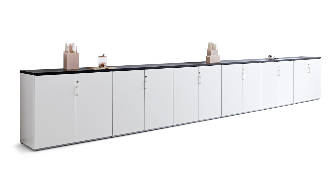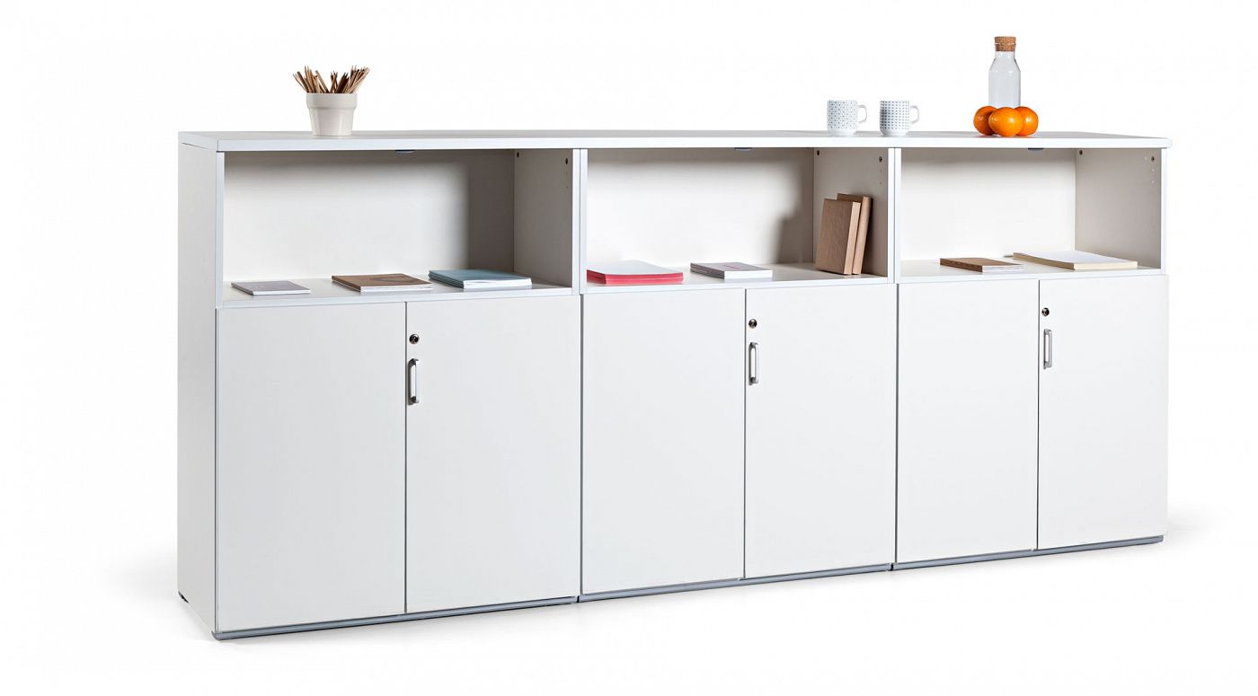 Amplia gama de armarios, que se adaptan al espacio y necesidades de cada área de trabajo, conviertiéndose en un complemento fundamental de almacenaje. Un programa de archivo de oficina en acabados melamina, disponible en varias medidas con opción de crecimiento horizontal y vertical