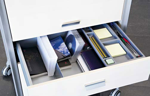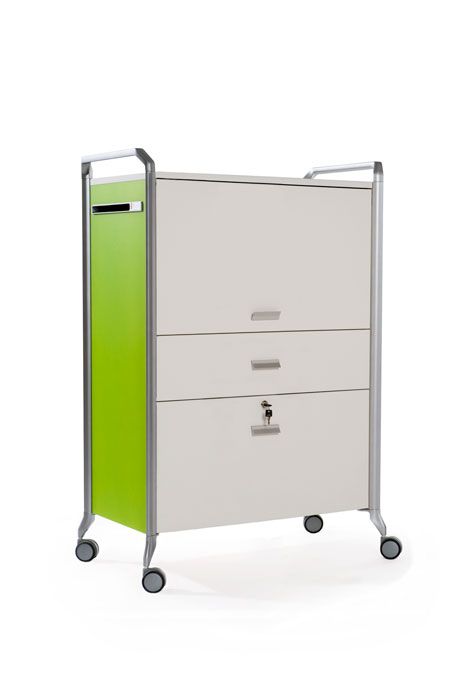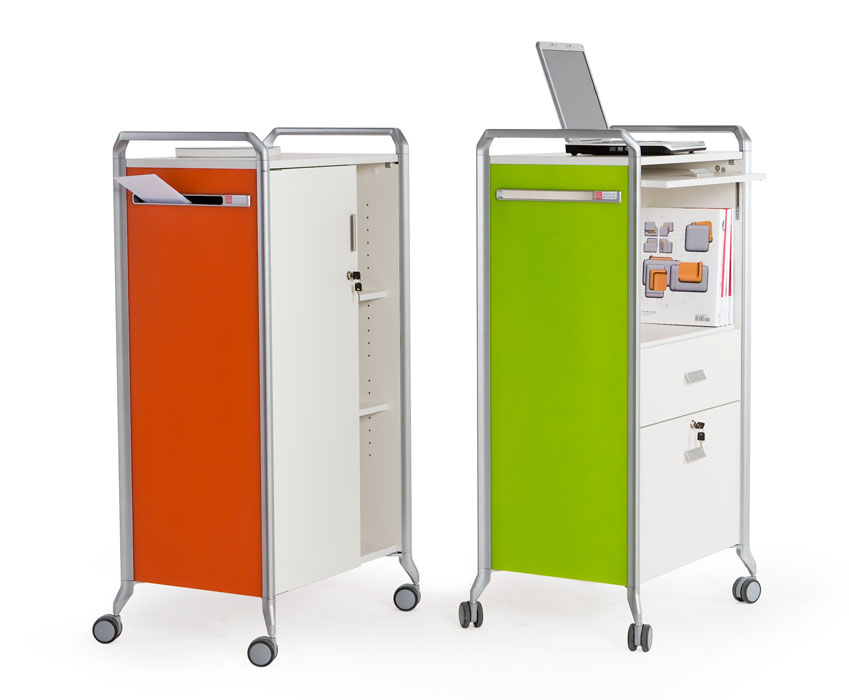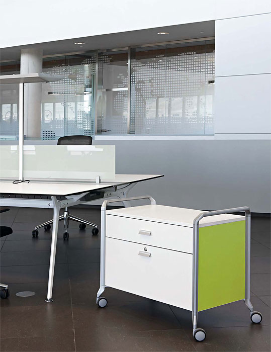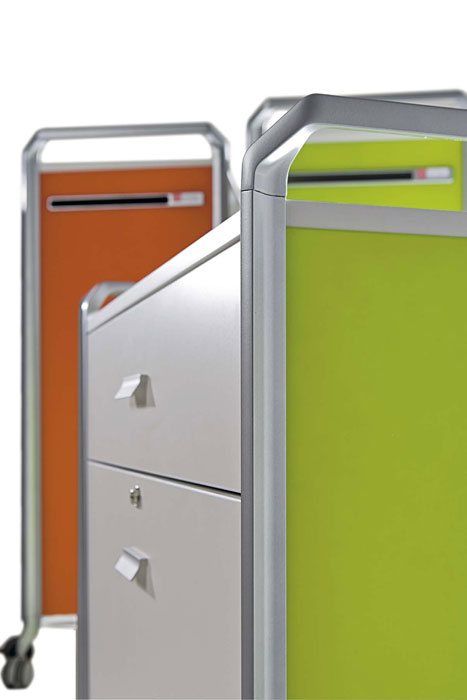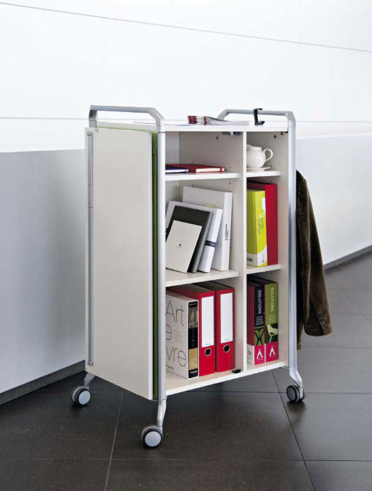 ON TIME, un sistema modular de almacenamiento, móvil y polivalente, pensado para ofrecer soluciones ingeniosas a las necesidades de clasificación y almacenaje del trabajo diario; un sistema de archivo versátil que actúa indistintamente como superficie de trabajo eventual o como elemento de separación y ordenación espacial, un sistema con ruedas capaz de ser trasladado a cualquier parte de forma rápida y sin esfuerzo resultando una solución “a tiempo” y siempre lista ante cualquier situación.