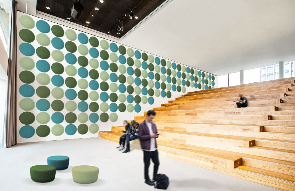ECObubble es un panel de color y luz que permite la corrección acústica perimétrica, manteniendo la usabilidad sin cambios y agregando un toque de color a paredes y techos; se puede distribuir en el espacio de manera oportuna, aprovechando al máximo el rendimiento de absorción de sonido. ECObubble se adapta armoniosamente a espacios con diferentes funciones, como oficinas, restaurantes, hogares, hospitales, gimnasios y donde quiera lograr el confort acústico. Los diferentes acabados de colores y materiales le permiten encontrar el panel más adecuado para su espacio.