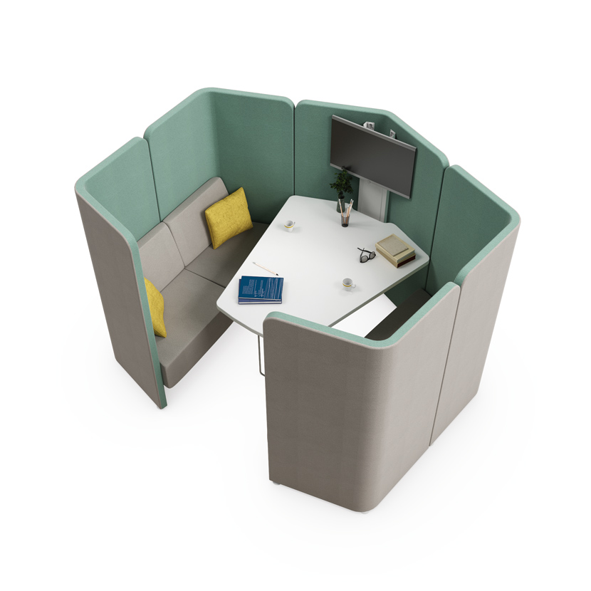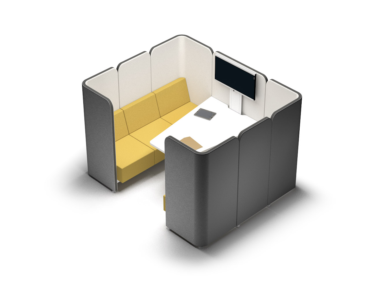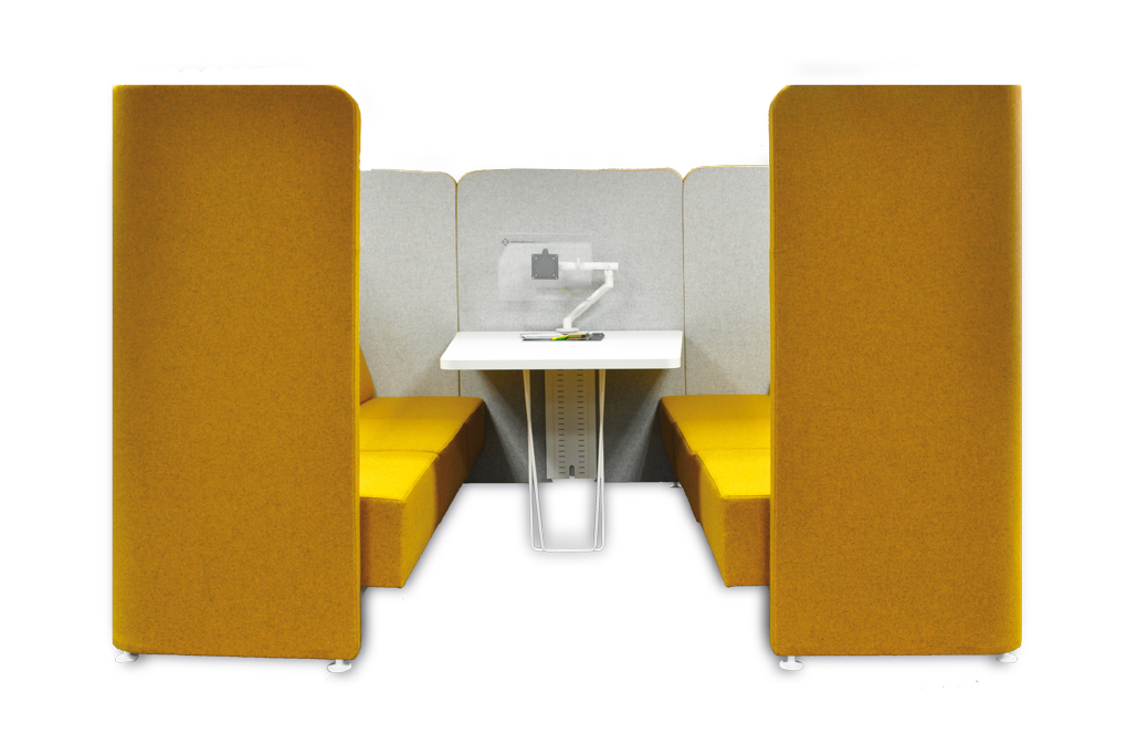 El universo Let’s combina elementos de microarquitectura para open spaces que generan zonas confortables y únicas. Let’s, obra del diseñador Gabriel Teixidó, resuelve a la perfección las necesidades de trabajo operativo, colaboración, concentración y reunión aportando una estética cuidada y agradable, haciendo de la oficina un lugar hogareño. Recubrimiento textil personalizable Recubrimiento con espuma de poliuretano de 60 Kg/m3 de densidad Tablero de partículas micropreforado espesor 3 mm Relleno de espuma de poliuretano de 20 Kg/m3 de densidad Estructura portante de MDF de espesor 30 mm Los espacios diáfanos –espacios abiertos, grandes superficies acristaladas…–, tan acordes a las últimas tendencias, dan lugar a ambientes más ruidosos. Por eso, en estos casos es importante equipar el entorno teniendo en cuenta la acústica, ya que de ello depende generar un espacio agradable y productivo. Los paneles Let’s han sido concebidos como elementos de microarquitectura y como solución acústica a su vez, lo que permite solucionar esta problemática. El gran avance de este sistema de paneles es que no requiere de tornillería ni perfilería para su unión. Con un sistema de enganches hembra-macho muy sencillo, los paneles Let’s pueden unirse en cuestión de segundos, ahorrando considerablemente tiempo de montaje
