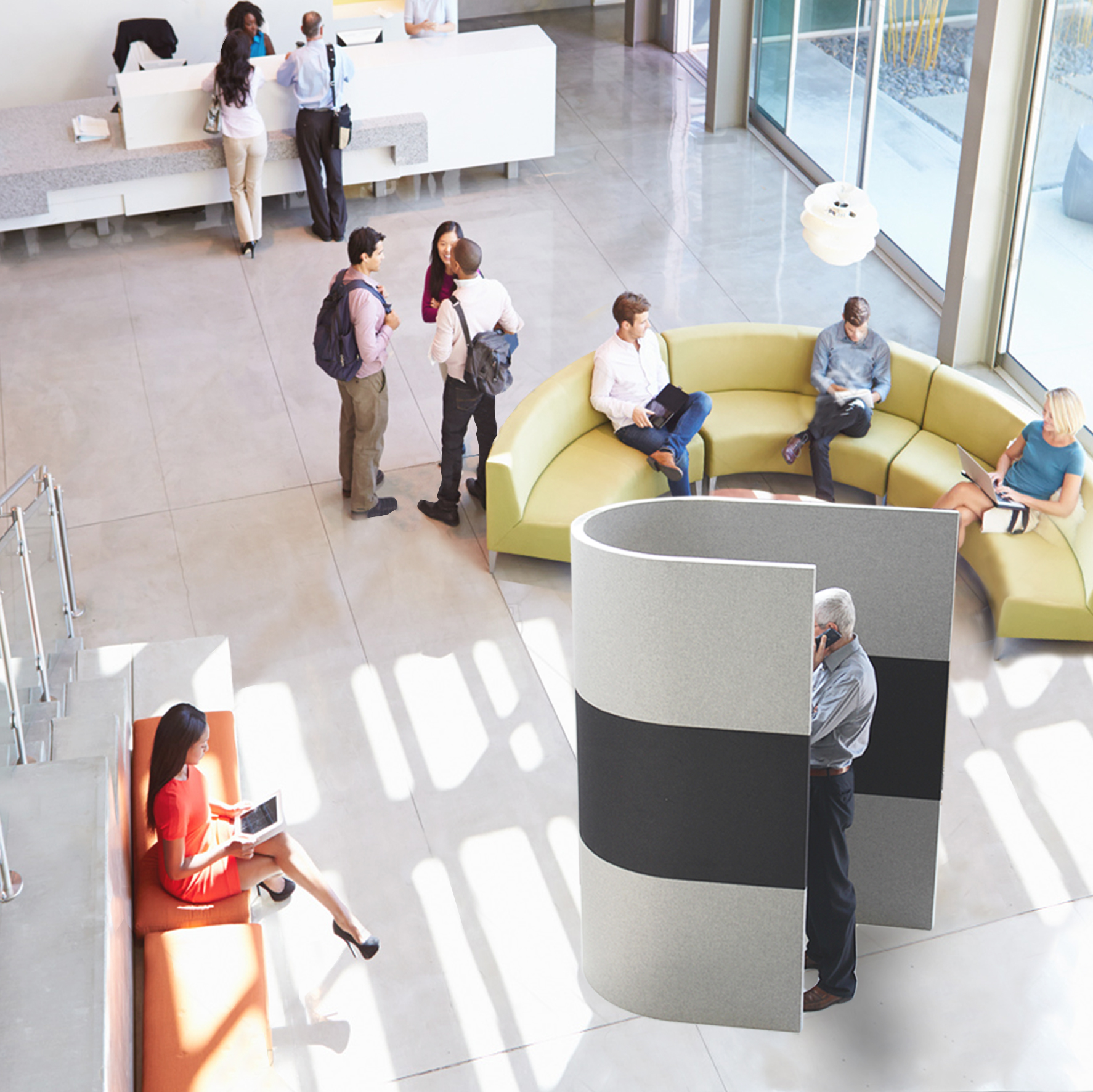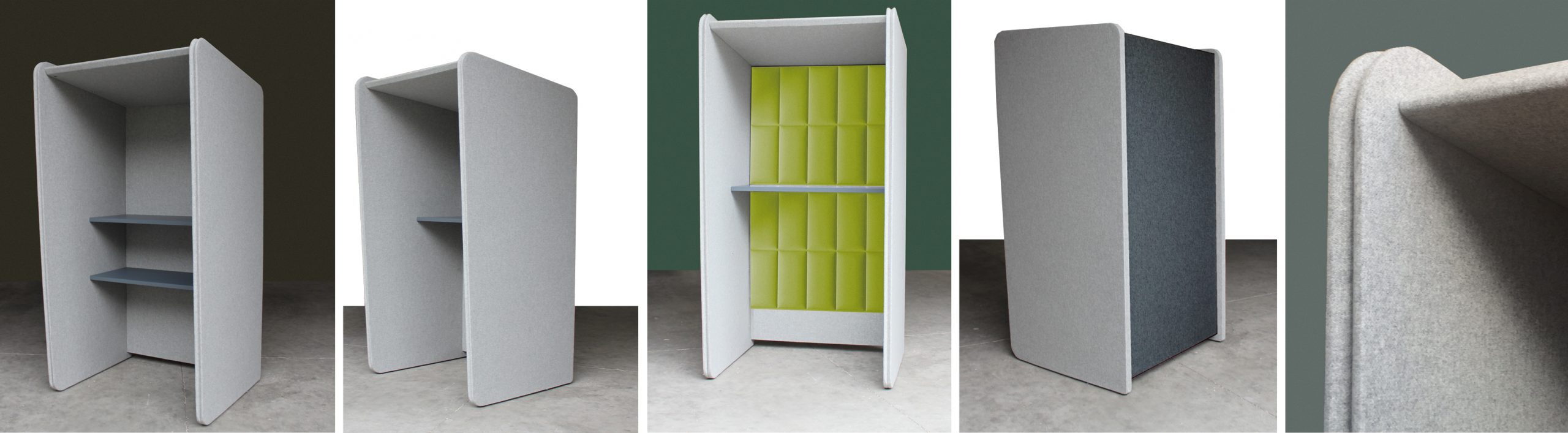 Producto de alta adsorción de sonido, diseñado específicamente para mejorar la comodidad acústica durante las llamadas telefónicas, especialmente en espacios grandes y / o abiertos. Se puede refinar acústicamente con paneles ECOdesk para insertar en el interior. El proceso personalizado permite a los clientes elegir el tamaño y el acabado de acuerdo con los requisitos