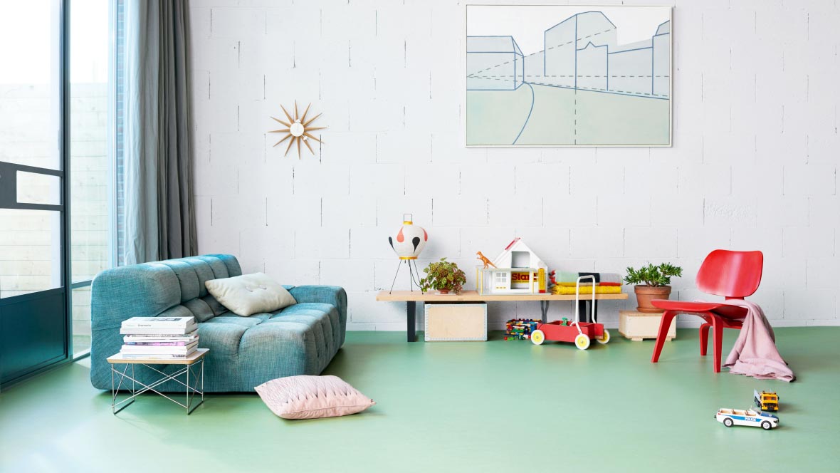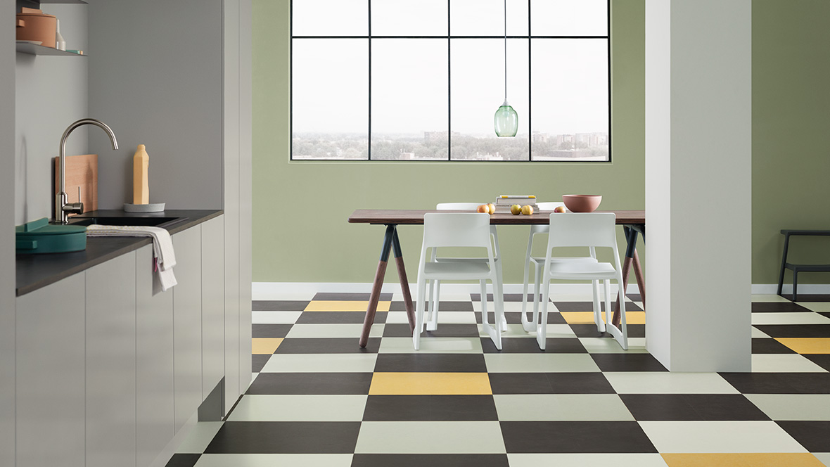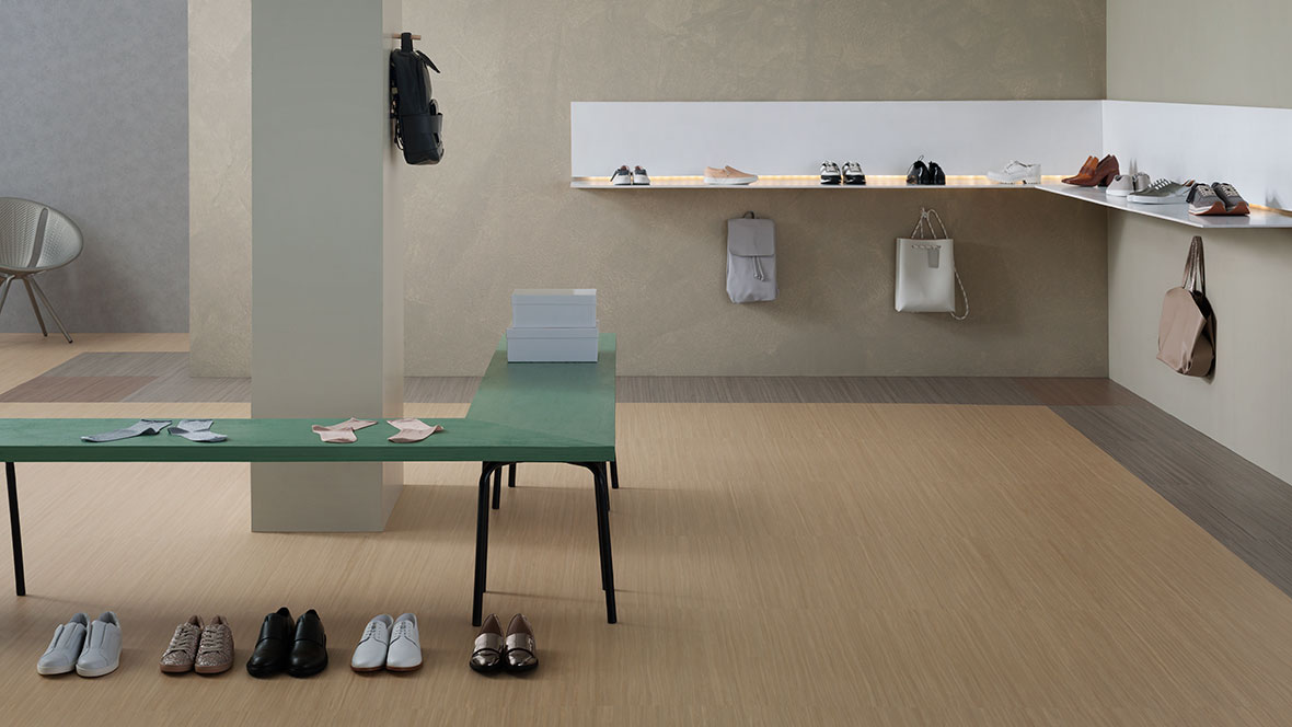 Marmoleum Click presenta una nueva colección fácil de instalar elaborada con paneles FAD (fibra de alta densidad), con una capa de Marmoleum de 2,5 mm en la parte superior y un revés de corcho que absorbe el ruido. Los paneles están disponibles en 3 tamaños y 23 colores, ofreciendo así infinitas posibilidades de diseño. Este pavimento natural no sólo es cómodo y agradable al tacto, sino también antiestático, duradero y fácil de mantener.