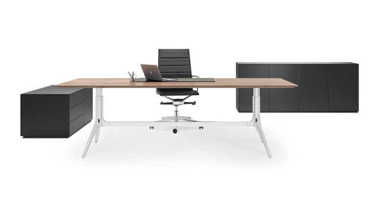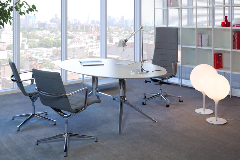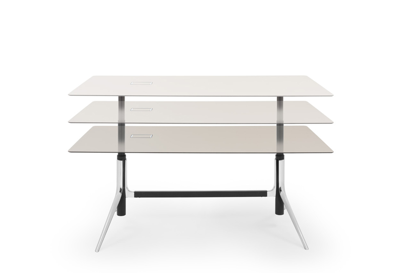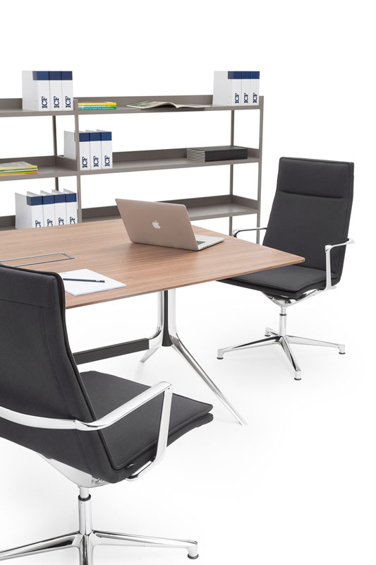No existe nada más sencillo que la estructura de una mesa: una superficie que se apoya sobre una base. Sin embargo, tanta sencillez puede dar lugar a formas de gran personalidad que otorgan una clara identidad al espacio en el cual se integran. NoTable, la ultima creación de la colección de mesas de ICF, es un claro ejemplo de ello. Fruto de una atenta búsqueda en términos de diseño y funcionalidad, NoTable se configura como un producto all-around, con una fuerte personalidad expresiva, manteniendo una forma lineal y elegante. El punto focal de NoTable es precisamente su base, concebida como la unión de varios elementos portantes, pero visualmente separados los unos de los otros para que sean los protagonistas del producto, cuya combinación logra un resultado muy armonioso y agradable, perfecto para cualquier tipo de espacio, de la oficina operativa a la ejecutiva, de la sala de reuniones sencilla a una sala de conferencias más grande.