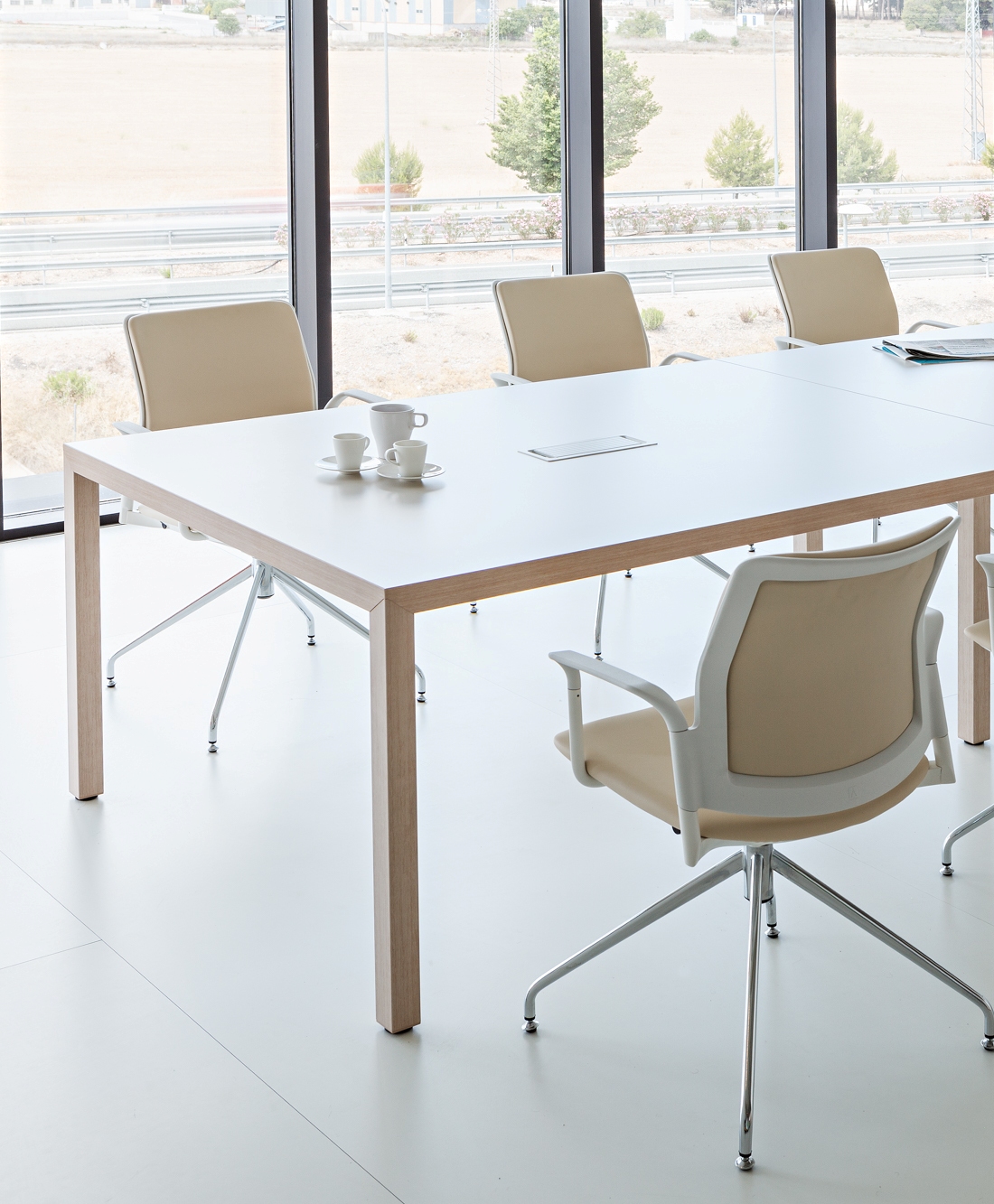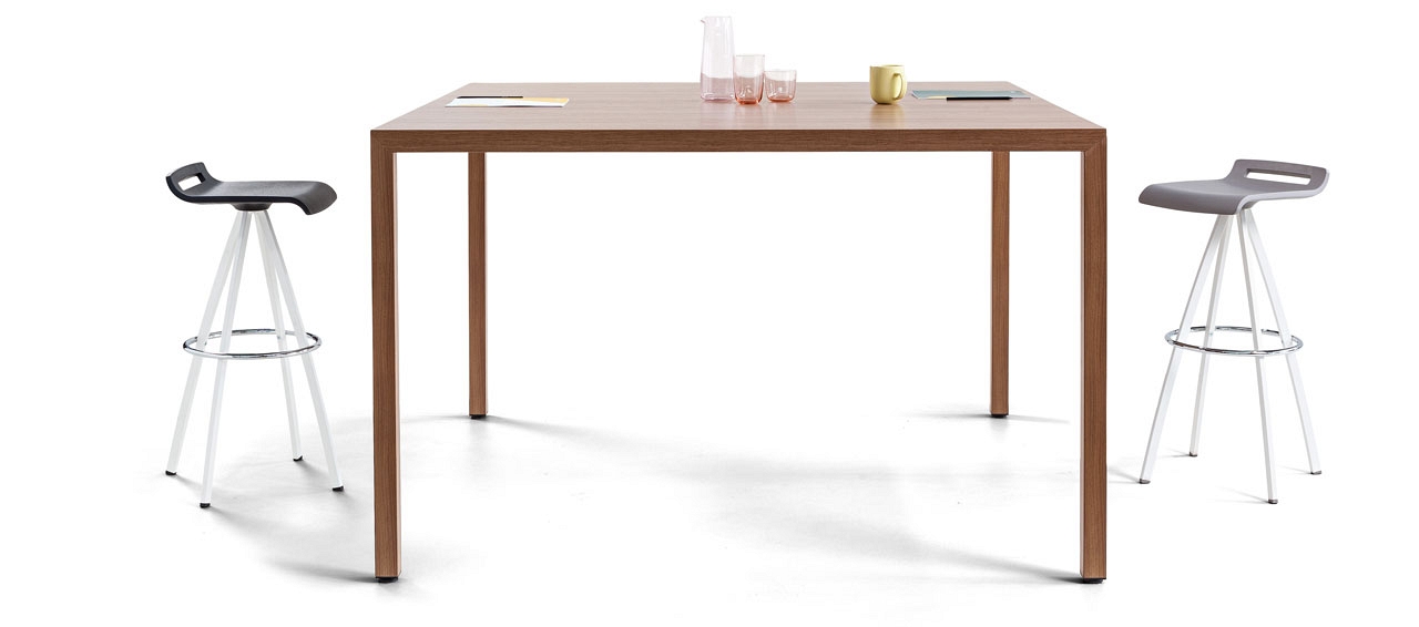 Prisma es una innovadora solución para los espacios de trabajo con la esencia arquitectónica de un prisma, compacto y solidario. Manteniendo la robustez y solidez de una mesa con estructura metálica pero con la calidez de los acabados imitación madera tanto en estructura como en tapas de mesas. Para facilitar la adaptación de PRISMA a cualquier espacio, el programa se presenta con una amplia gama de mesas de reunión de altura de pie que aporta una máxima versatilidad para todo tipo de espacios y proyectos
