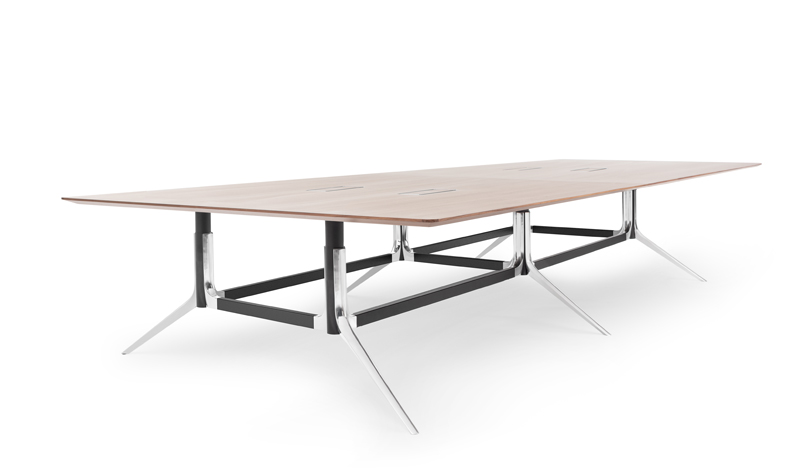 Las mesas Longo, disponibles tanto para soluciones operativas como de reunión, combinan el aluminio extrusionado de la estructura, con la inyección de aluminio de las patas y puntos de unión. La elección de este material junto con su diseño, le otorgan un aspecto ligero, suave y coherente con el resto de elementos con los que se fusiona: armarios, librerías, sofás o divisorias fornoabsorbentes.