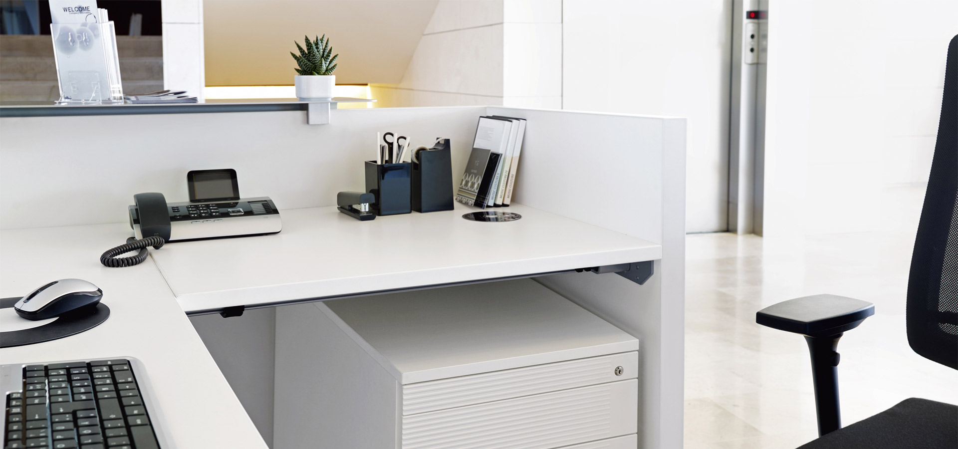 En la recepción de la empresa o en la sala de exposición, en oficinas con atención al cliente, como punto de encuentro en oficinas diáfanas o en la entrada de consultas y bufetes, el mostrador de recepción desempeña un papel primordial. Da la bienvenida a los visitantes, refleja la cultura de la empresa y, al mismo tiempo es un puesto de trabajo que requiere ergonomía. El programa de mostradores de recepción de Sedus ofrece las mejores condiciones para el perfecto cumplimiento de esta doble función.