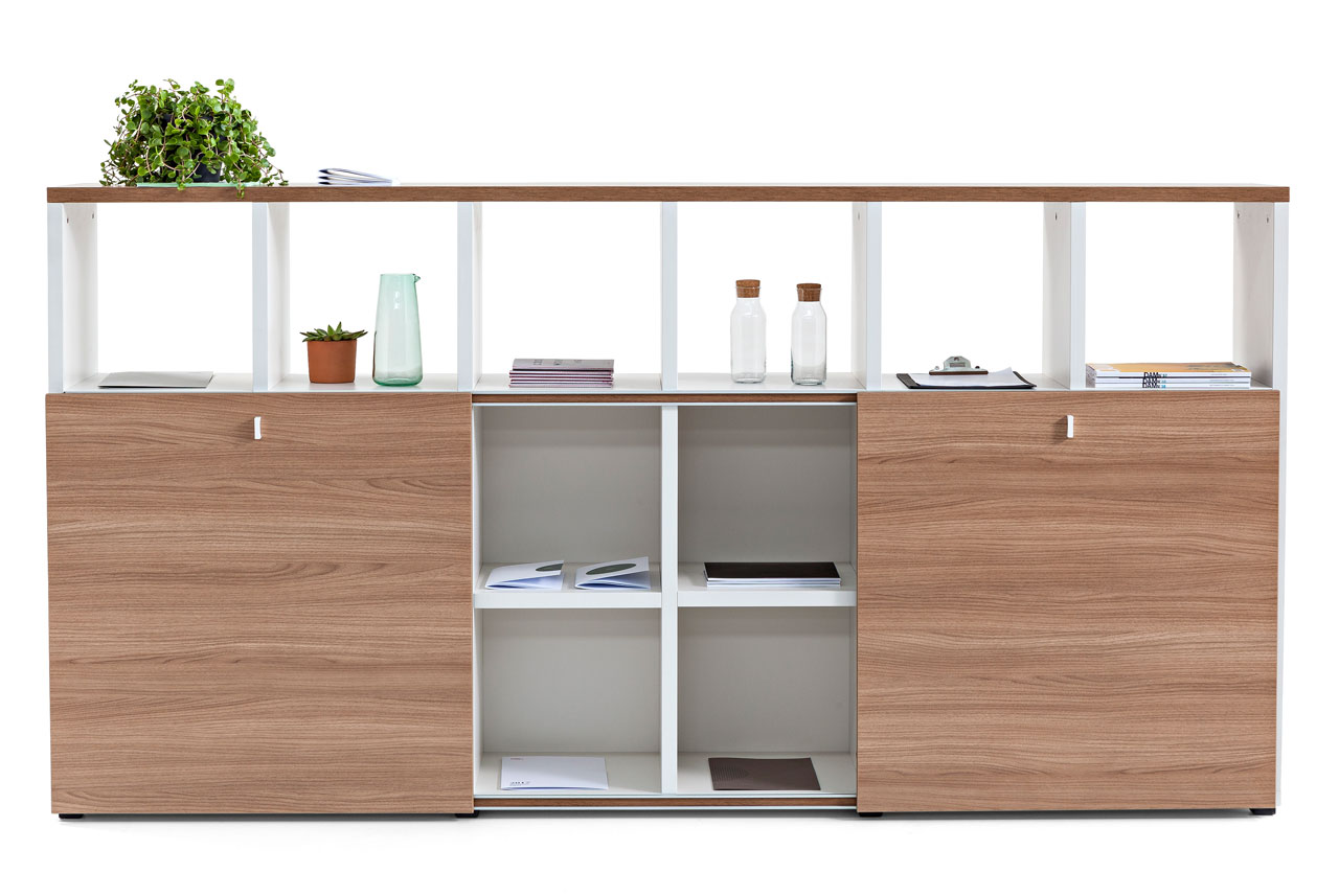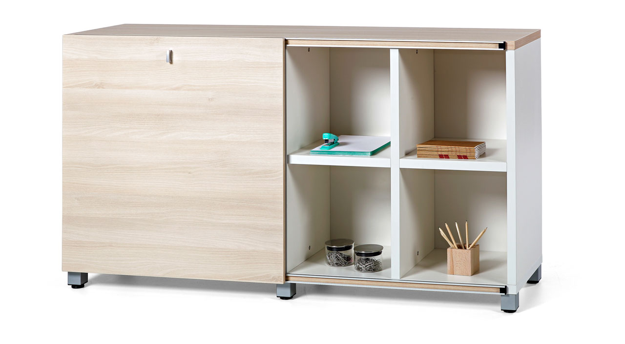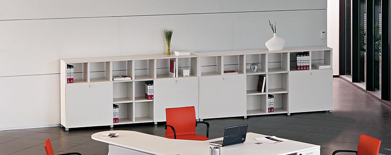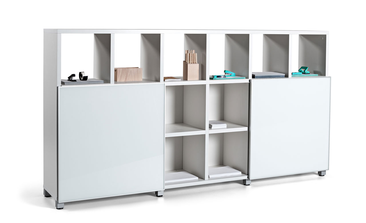Cubic es un programa de archivo para oficina, donde su simetría ofrece unas funciones de almacenamiento óptimo, con una gran facilidad de acceso. Cubic, un programa de armarios de estética sencilla y atemporal, con funciones de archivo y librería. Diseño moderno para despachos personales y de dirección. Las puertas correderas pueden ser de madera o de cristal con marco de aluminio.