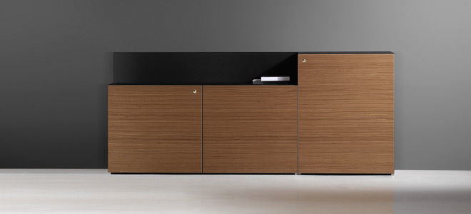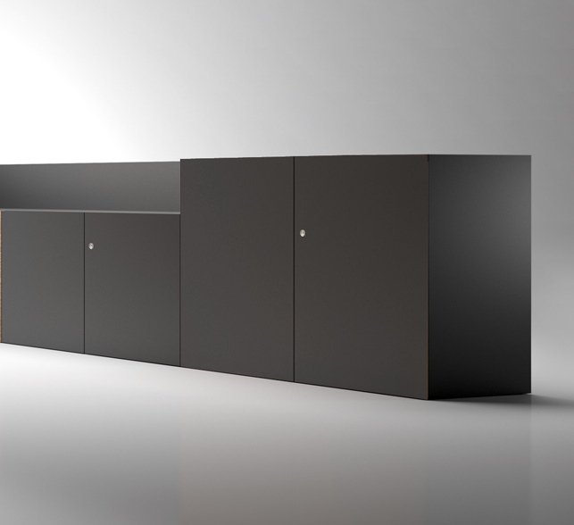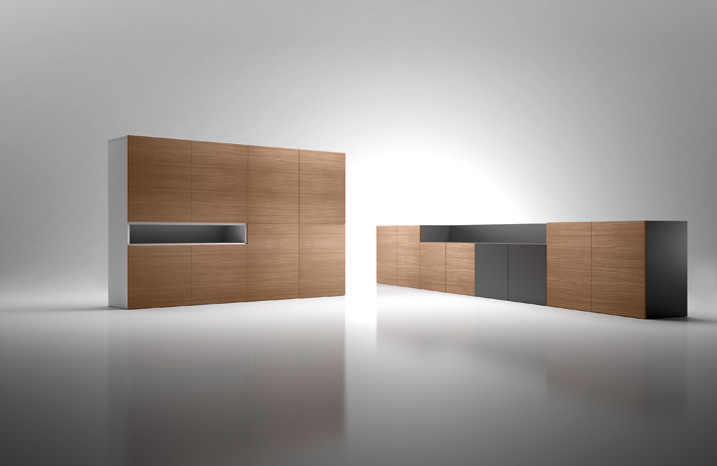 Sólo una armónica relación entre función y forma es capaz de optimizar el espacio que nos rodea. Nacen entonces líneas esenciales, sobrias y necesarias que, combinadas con el rechazo de lo pretencioso, apuntan a una perfecta funcionalidad del lugar de trabajo. Cubo y Quorum disponen de una exclusiva gama de acabados cuidadosamente seleccionada. Así, el programa ofrece la posibilidad de combinar tres acabados en madera, dos terminaciones de lacado para el exterior y dos bilaminados para el interior de bucs dobles y armarios.