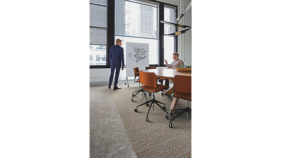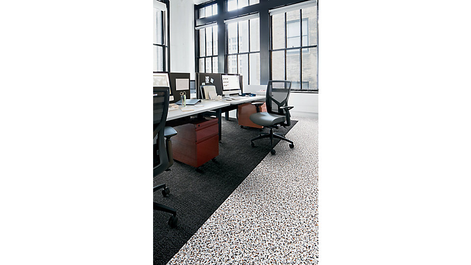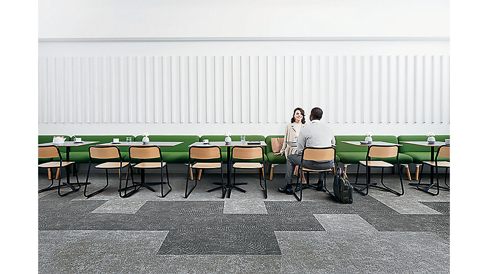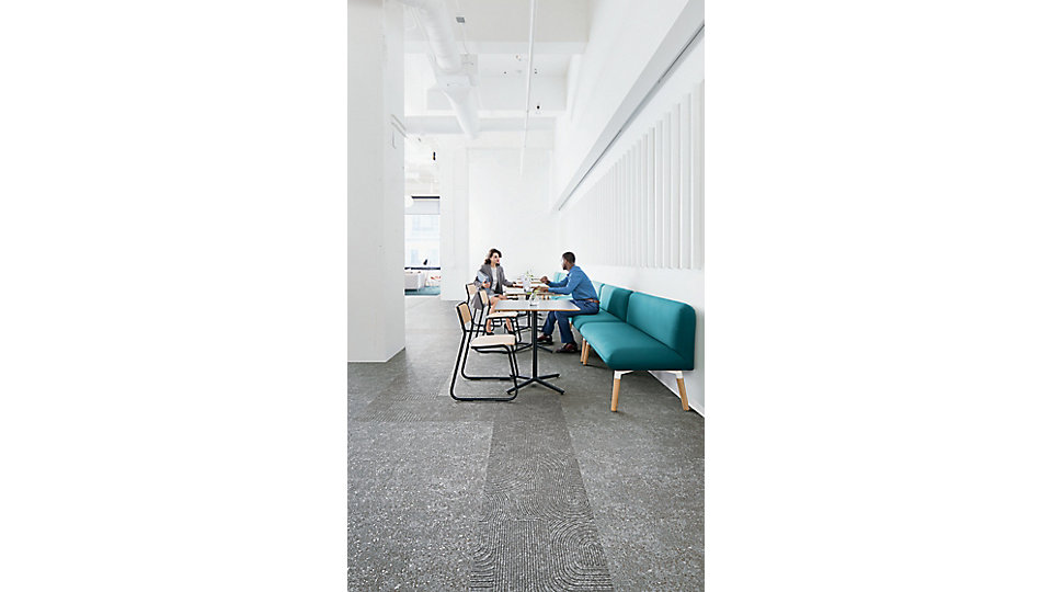 Texturas monolíticas que denotan solemnidad y solidez conviven con confeti y colores alegres. Las combinaciones inesperadas de materiales inspiran resultados creativos. ¡Celebra las combinaciones! Look Both Ways es una colección de estampados de moquetas modulares y LVT que combina la pureza del estilo zen con la jovialidad. Conjugando el objetivo y la funcionalidad con su intencionalidad, estos estilos crean paisajes que resultan prácticos y deleitan de maneras infinitas.