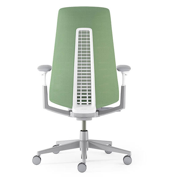 La silla de trabajo Fern es sencilla, natural y accesible. Inspirada por la naturaleza, está en sintonía con cada uno de sus movimientos. El sistema Wave Suspension™ patentado de Fern es el corazón de la silla y la clave del confort y la flexibilidad de su respaldo. Éste, aparentemente sencillo, presenta desarrollos que incorporan altos niveles de investigación científica, ingeniería e innovación. El Tallo es una columna central que soporta un conjunto de Frondas que se extienden como hojas. Cada Fronda está calibrada para proporcionar soporte a un área diferente de la espalda, desde la zona torácica (parte alta) a la región lumbar o pélvica. El soporte de la espalda es tan constante como el movimiento de la persona. La Cuna envuelve las Frondas y el Tallo, y trabaja en conjunto con ellas para proporcionar el mejor soporte sin necesidad de que el usuario realice ningún esfuerzo.