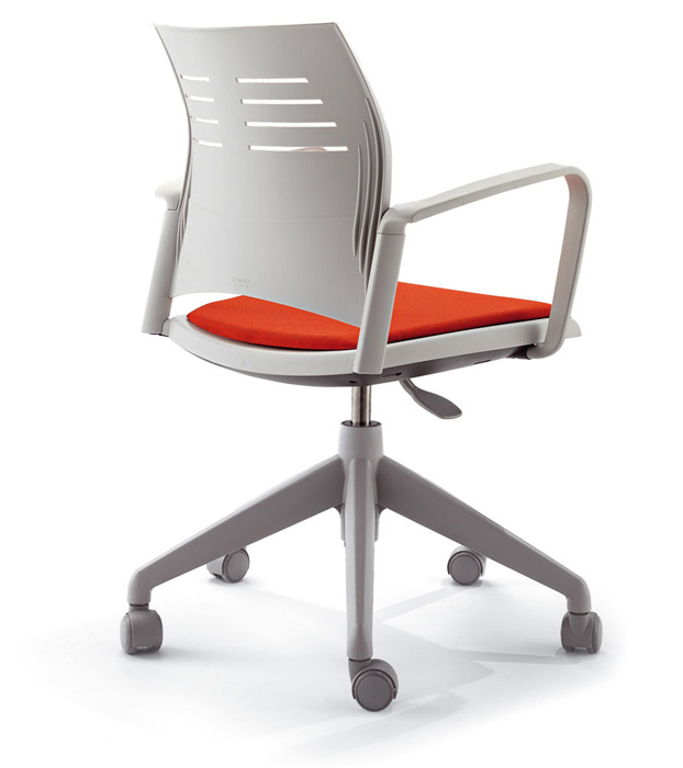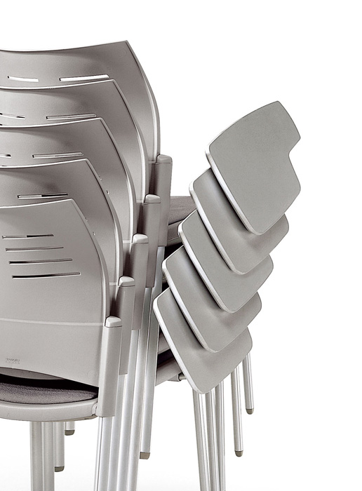 Su cuidado diseño, sus diferentes modelos y la gran variedad de colores combinados con los posibles tapizados, hacen de Spacio una silla ligera y polivalente, pensada para los diferentes entornos del contract y el hábitat. La silla incorpora un respaldo compacto, con un diseño de líneas suaves y ranuras de transpiración, que le otorga robustez al mismo tiempo que flexibilidad y ergonomía