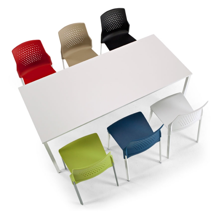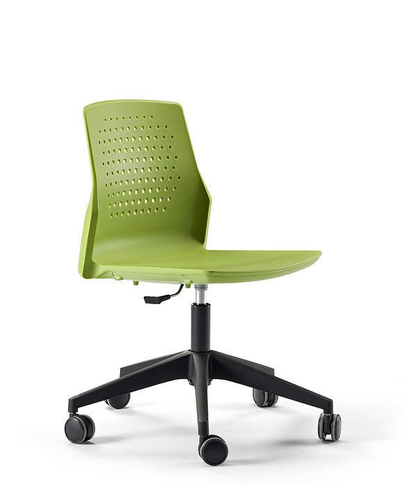 UKA, una silla creada para colectividades, divertida, funcional y muy visual que ha sabido encontrar su lugar entre sus hermanas mayores, otros modelos mucho más sofisticados y tecnológicamente avanzados.Encontramos UKA en cinco modelos diferentes; cuatro patas, cuatro patas con ruedas, elevación a gas, banqueta y bancadas. Con una gama cromática de nueve colores (gris, marengo, azul, azul claro, rojo, negro, naranja, pistacho y beige). Todo un abanico de opciones que todavía hace más adaptable cada modelo al lugar de destino. Además, su carcasa de polipropileno con fibra de vidrio ergonómico y perforaciones de transpiración, le proporcionan una textura cómoda que aporta una perfecta sujeción lumbar.Ç