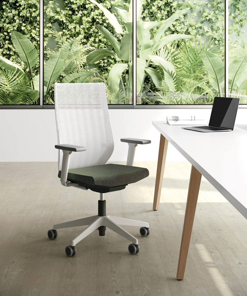 La silueta de Eben refleja una combinación entre lo estético y lo técnico que hacen de este programa de sillería una opción perfecta para zonas donde la imagen adquiere un rango especial. Su diseño está pensado para aportar ese toque singular con unos acabados inspiradores para el trabajo, como son el aluminio y la malla, y unas líneas curvas pronunciadas.
