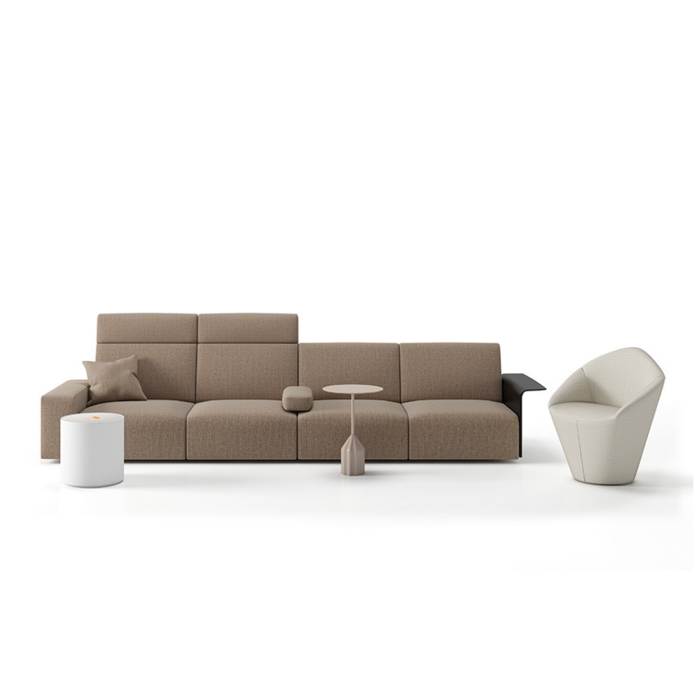 Sistema es una colección modular compuesta por elementos independientes en el que el cliente puede, por primera vez, configurar el sofá a medida de sus gustos y necesidades. Diferentes brazos, respaldos, asientos, accesorios, etc., que irán sumándose a otros nuevos elementos que cada año desarrollaremos, creando un concepto innovador como nunca antes se había planteado; un sistema vivo. El sofá Sistema está diseñado para conseguir su máximo confort sin necesidad de almohadones complementarios, no obstante les ofrecemos un modelo de cuidadas proporciones.