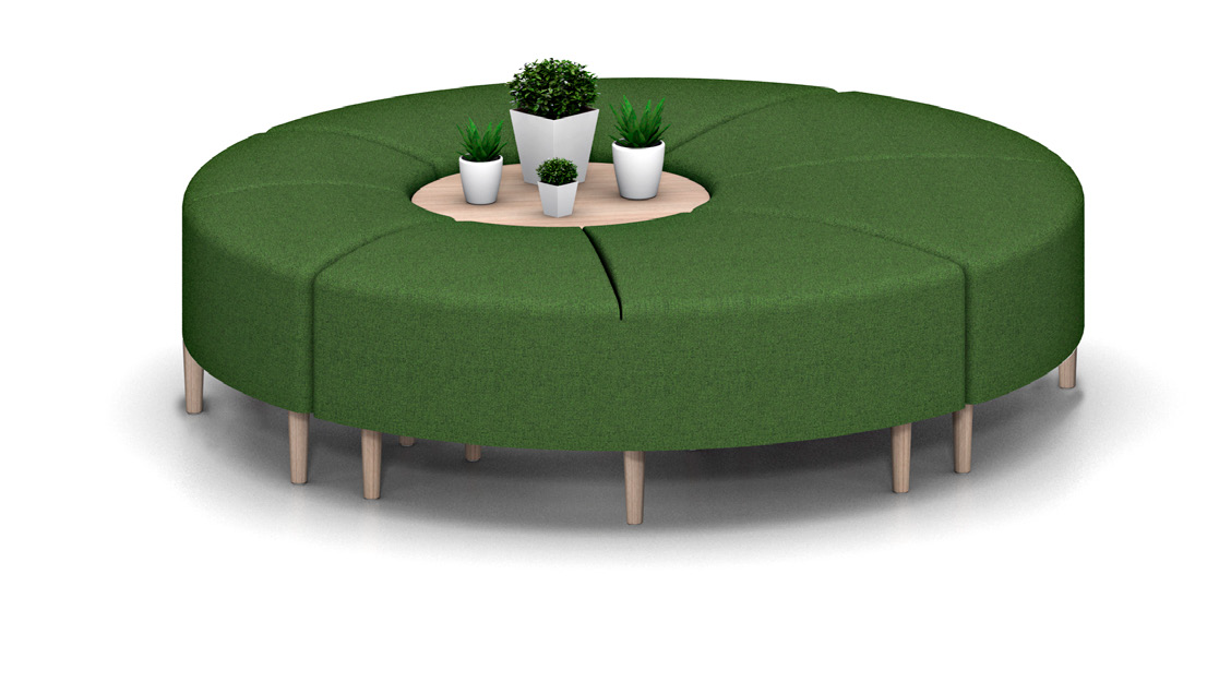 Bend es una colección llena de poesía, fluidez y un carácter sacado directamente de la naturaleza. Surge con la idea de aportar movimiento y singularidad. Se inspira en los meandros de los ríos y, al igual que éstos se abren paso por el terreno, Bend camina por los espacios generando diferentes zonas de descanso adaptadas a todos los usuarios”. Bend no tiene una vocación de uso cerrada. Es una colección que da libertad al prescriptor con una capacidad de personalización casi infinita, que el usuario percibirá de forma intuitiva y sencilla. Bend está formado por 4 distintos módulos que permiten una conexión entre ellos, inclusive un círculo cerrado. Las posibilidades son infinitas, el único límite es la imaginación