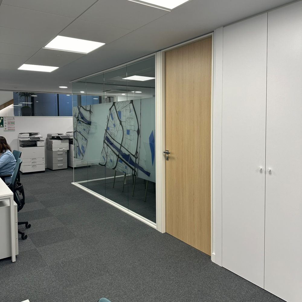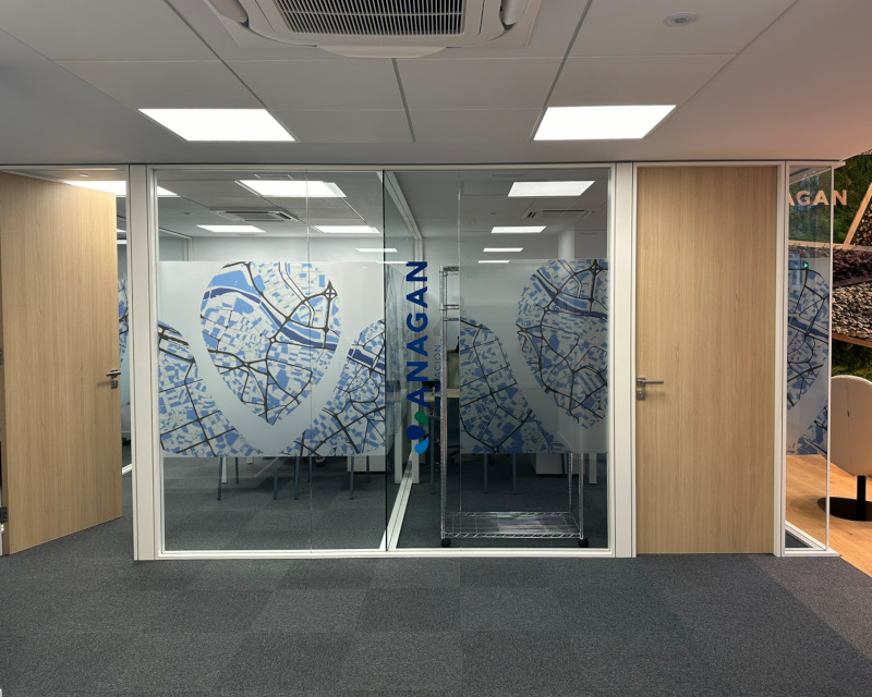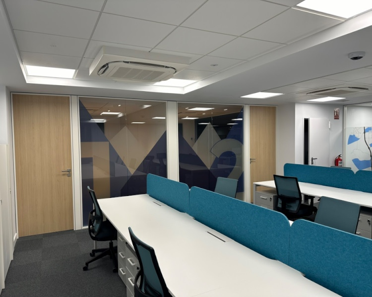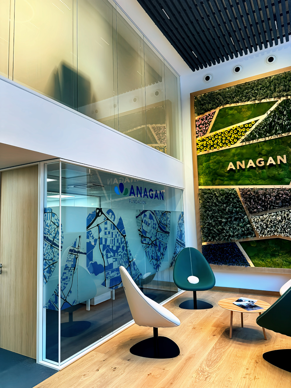 Seguros Anagan , una de las corredurias de seguros mas consolidadsa en Aragon desde hace mas de 30 años ha confiado en Atri para la reforma integral de sus nuevas oficinas. Unas oficinas que cuentan con más de 1200 m2 de superficie, que albergan a mas de 80 empleados , y una red comercial de mas de 300 personas. En este proyecto se ha realizado una distribucion de espacios acorde a las necesidades del cliente , dando libertad y flexibilidad de espacios con tabiqueria modular movil, espacios de trabajo interdepartamental y despachos de direccion y alta direccion. Un proyecto que demandaba un alto nivel de insonorización, tanto de nivel acustico como de nivel privativo, por ello se ha decidido el uso de una moqueta acustica textil de Interface para el pavimento, y en las mamparas y compartimentacion las mamparas Trebe de Sitab.