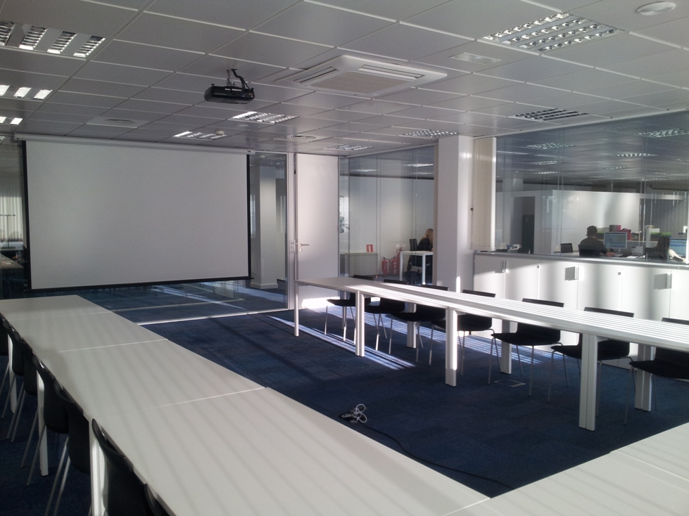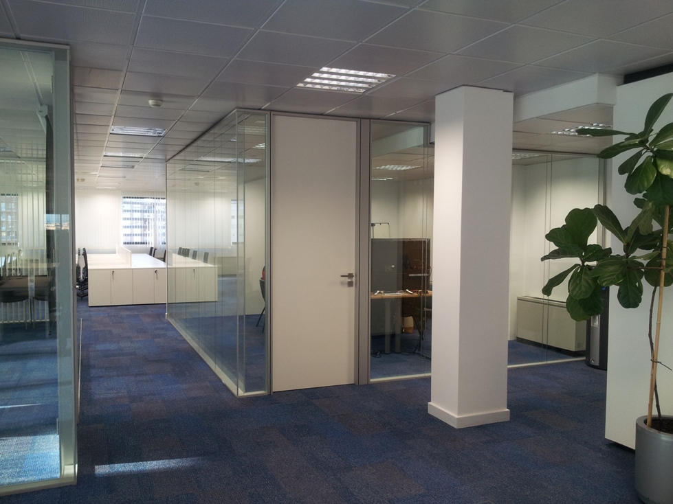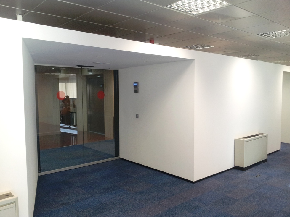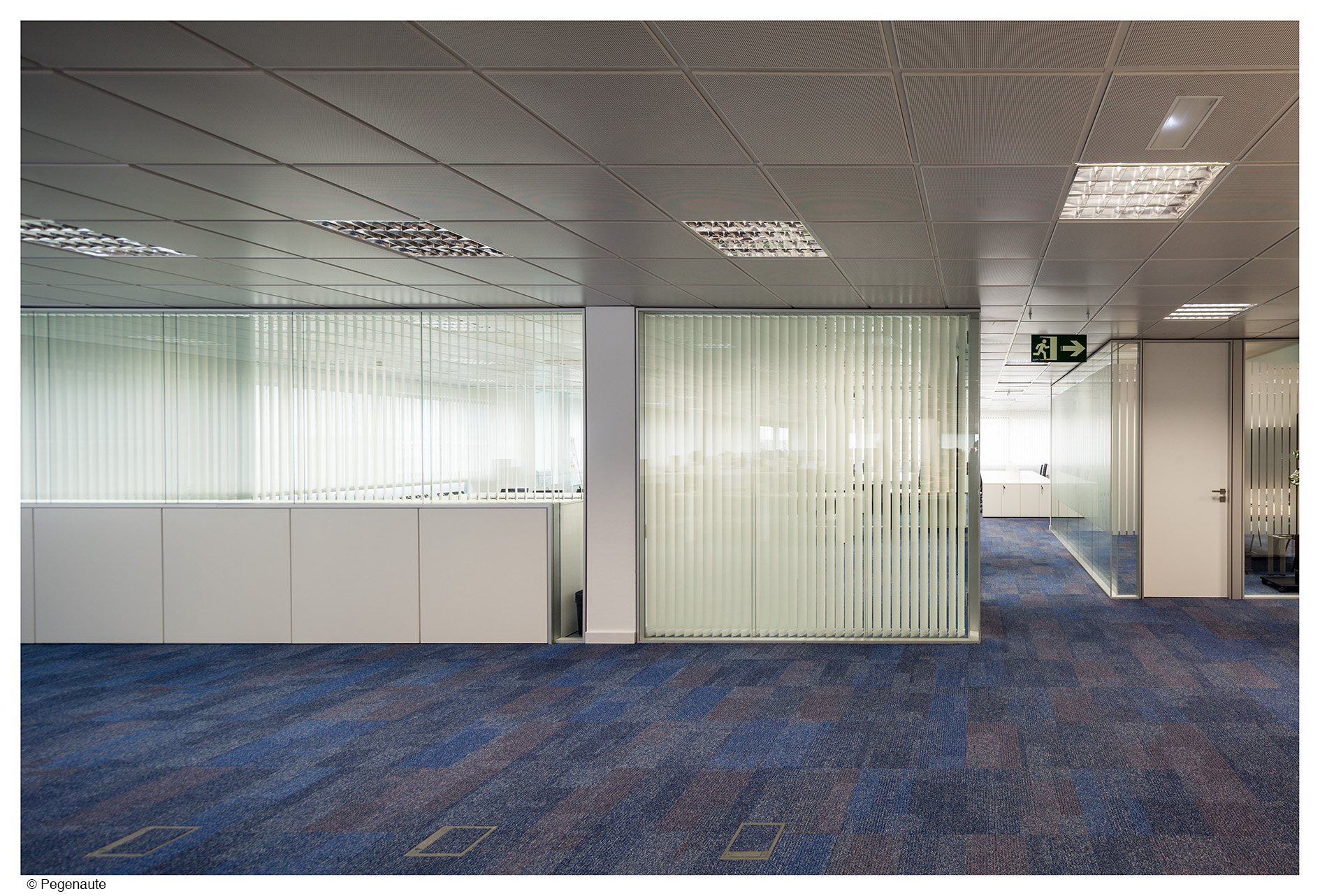 Los diferentes espacios se han acondicionado con tabiquería de Sitab y pladur. Los suelos se han recubierto con la moqueta de Interface y se han realizado trabajos de instalación de fontaneria para el varios office.