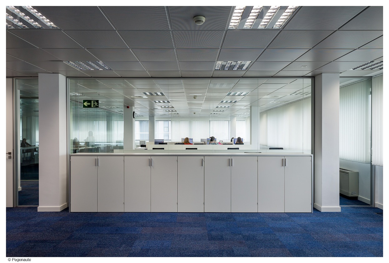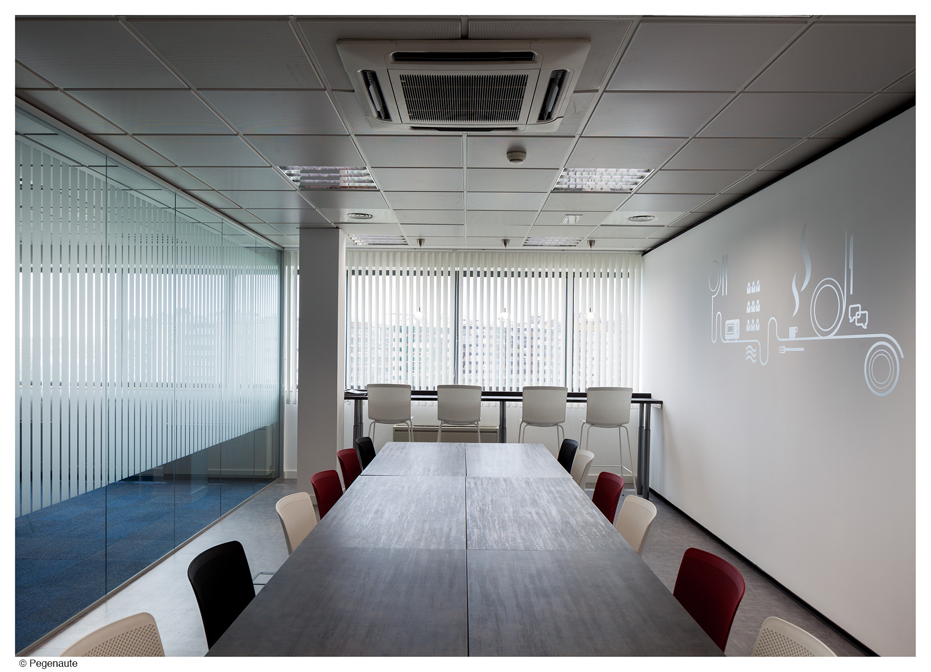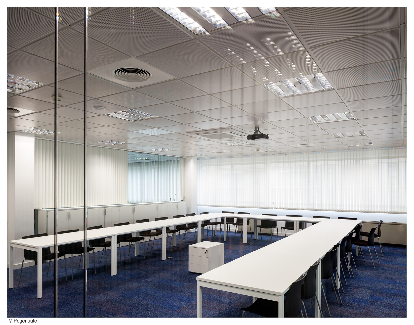 Los diferentes espacios se han acondicionado con tabiquería de Sitab y pladur. Los suelos se han recubierto con la moqueta de Interface y se han realizado trabajos de instalación de fontaneria para el varios office.