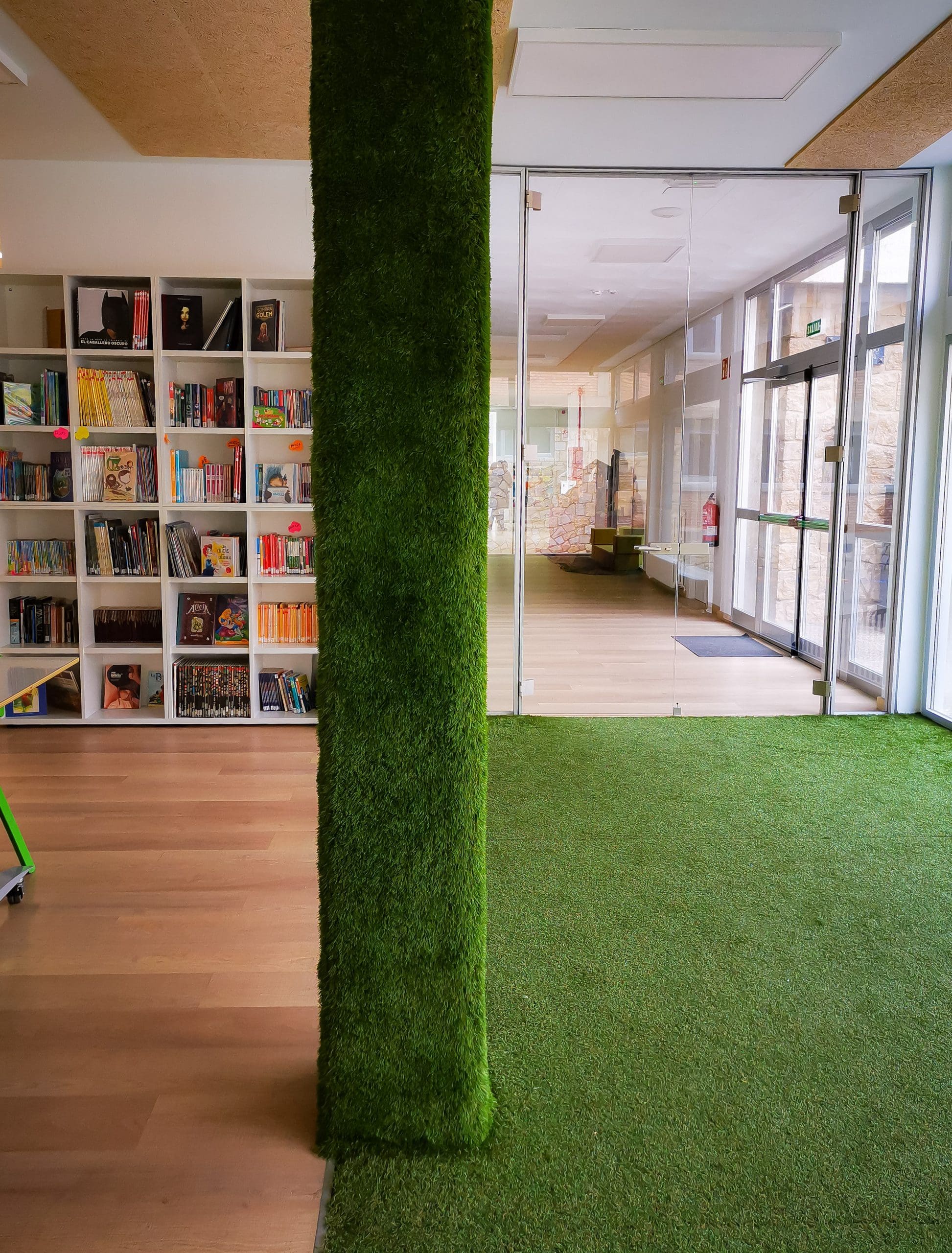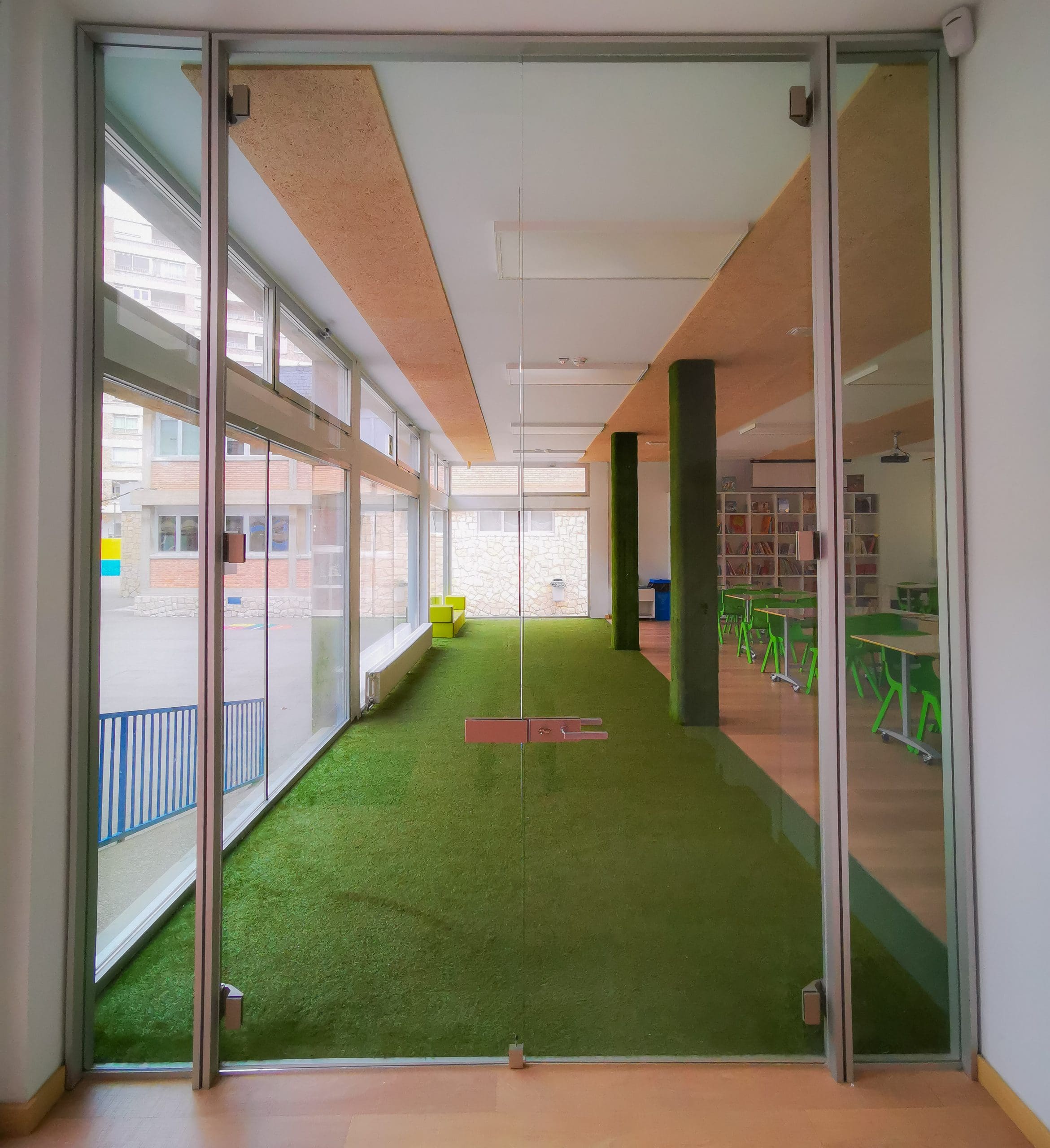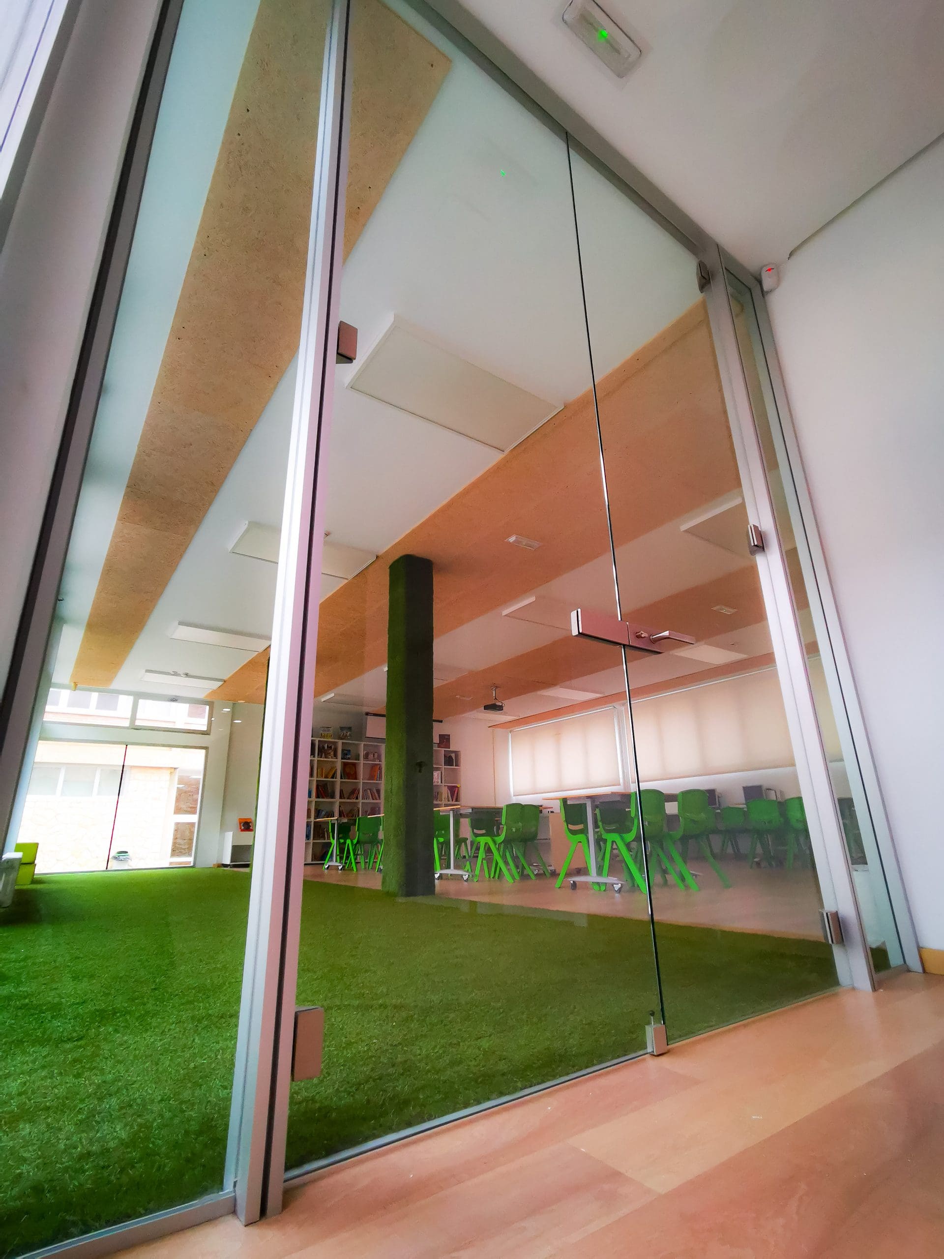 No solo nuestro trabajo es aplicable a oficinas , y aqui podeis ver como unas mamparas y varios elementos decorativos pueden dar vida a un espacio educativo y de trabajo.