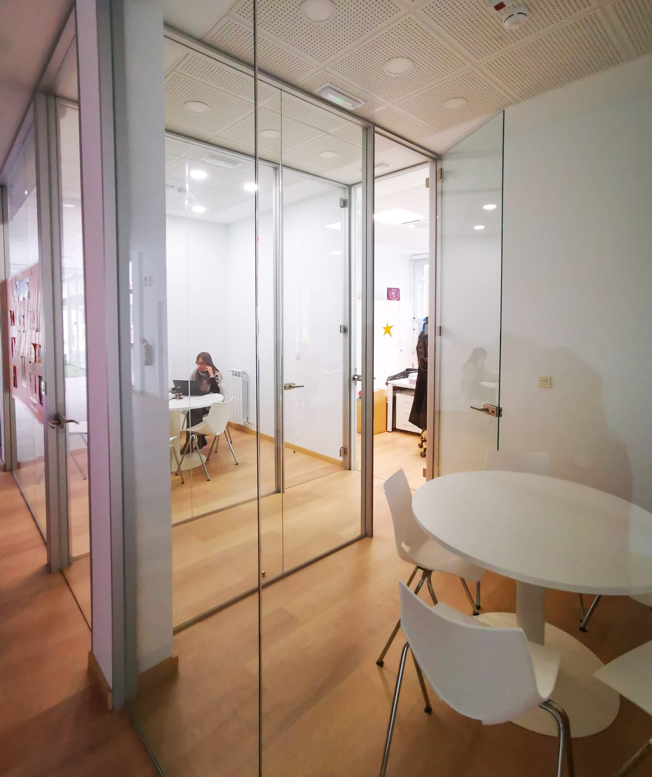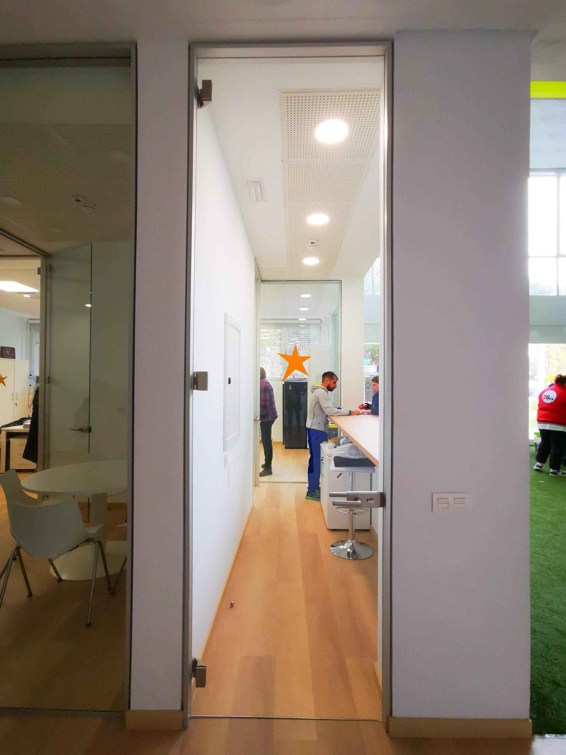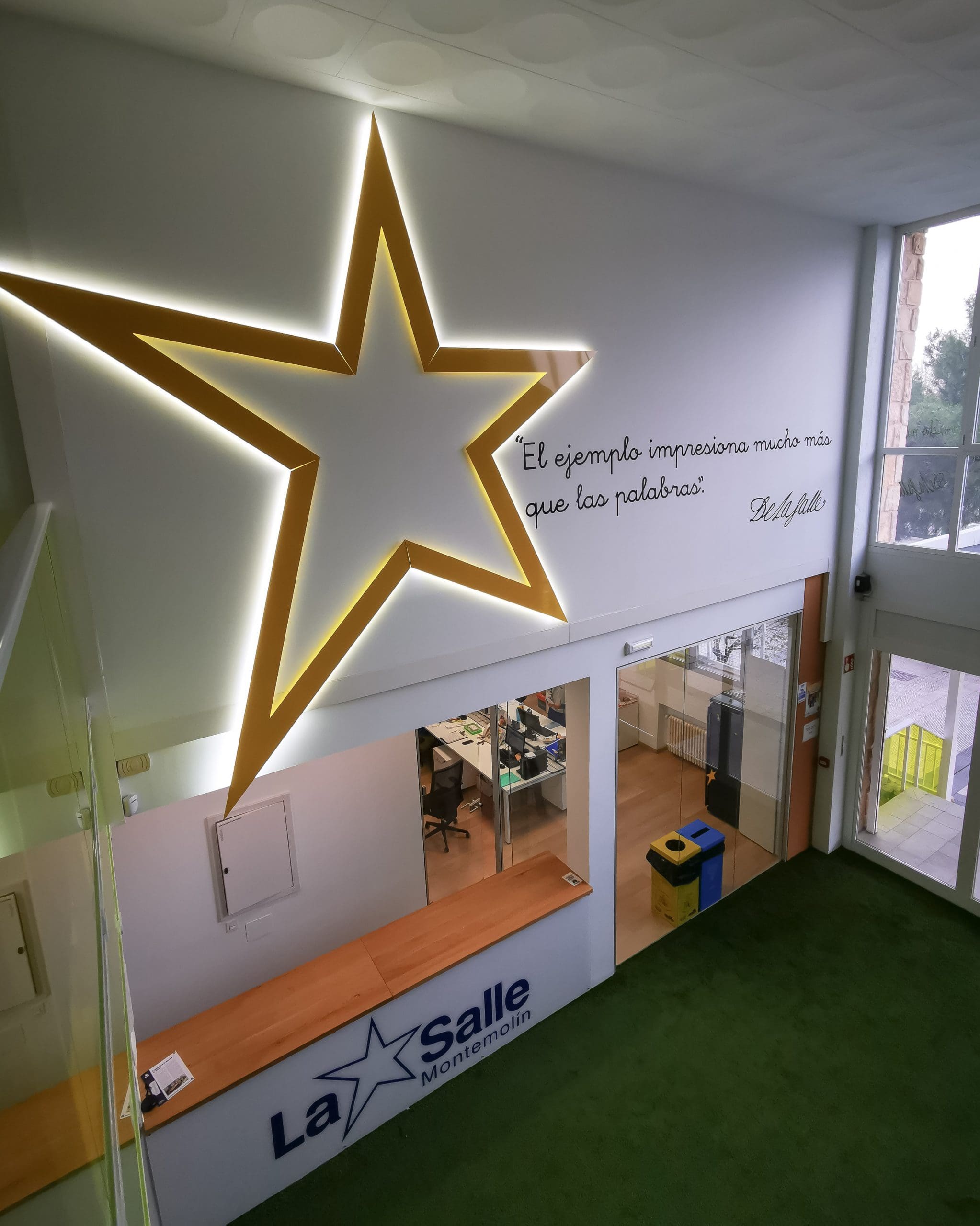 No solo nuestro trabajo es aplicable a oficinas , y aqui podeis ver como unas mamparas y varios elementos decorativos pueden dar vida a un espacio educativo y de trabajo.
