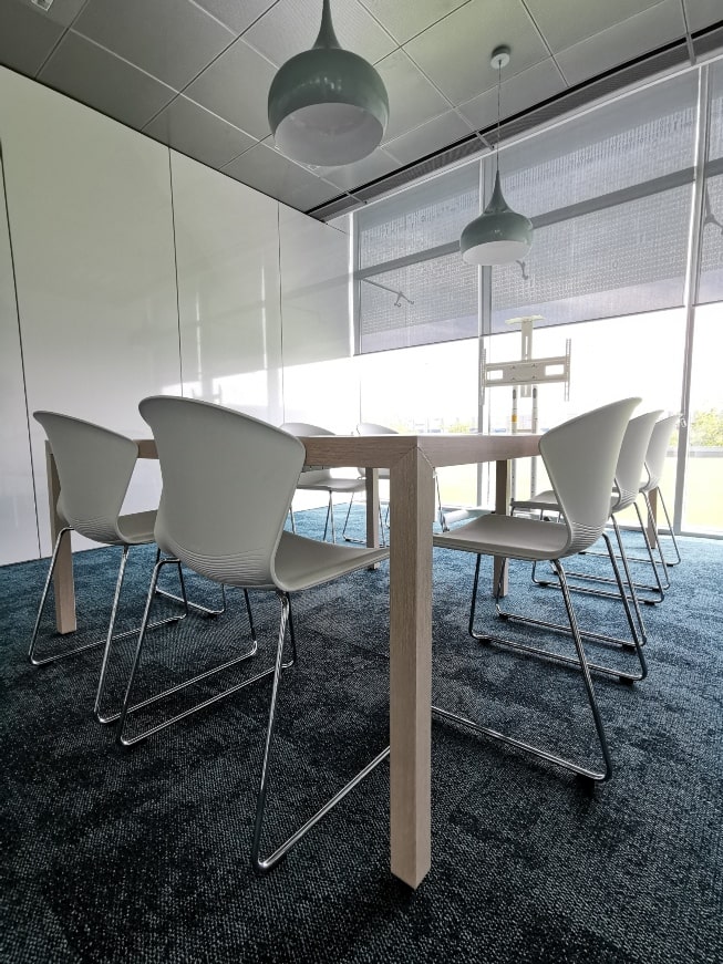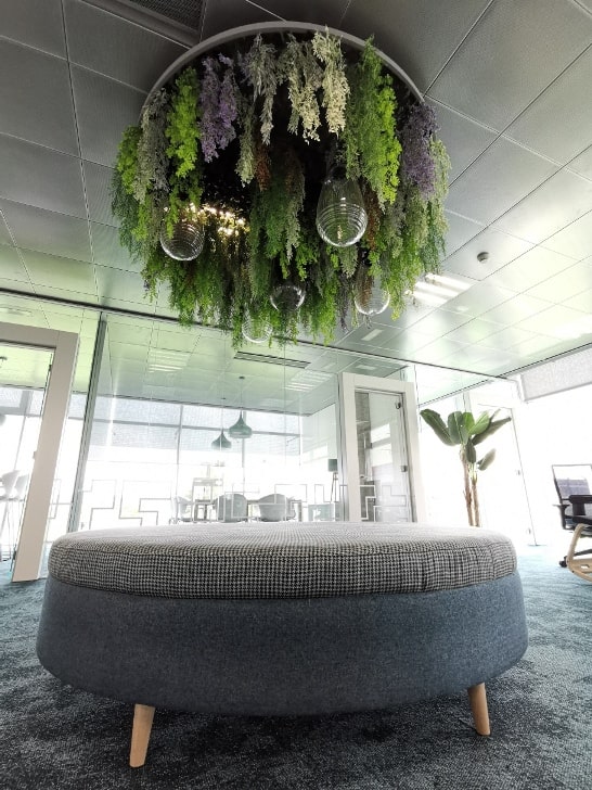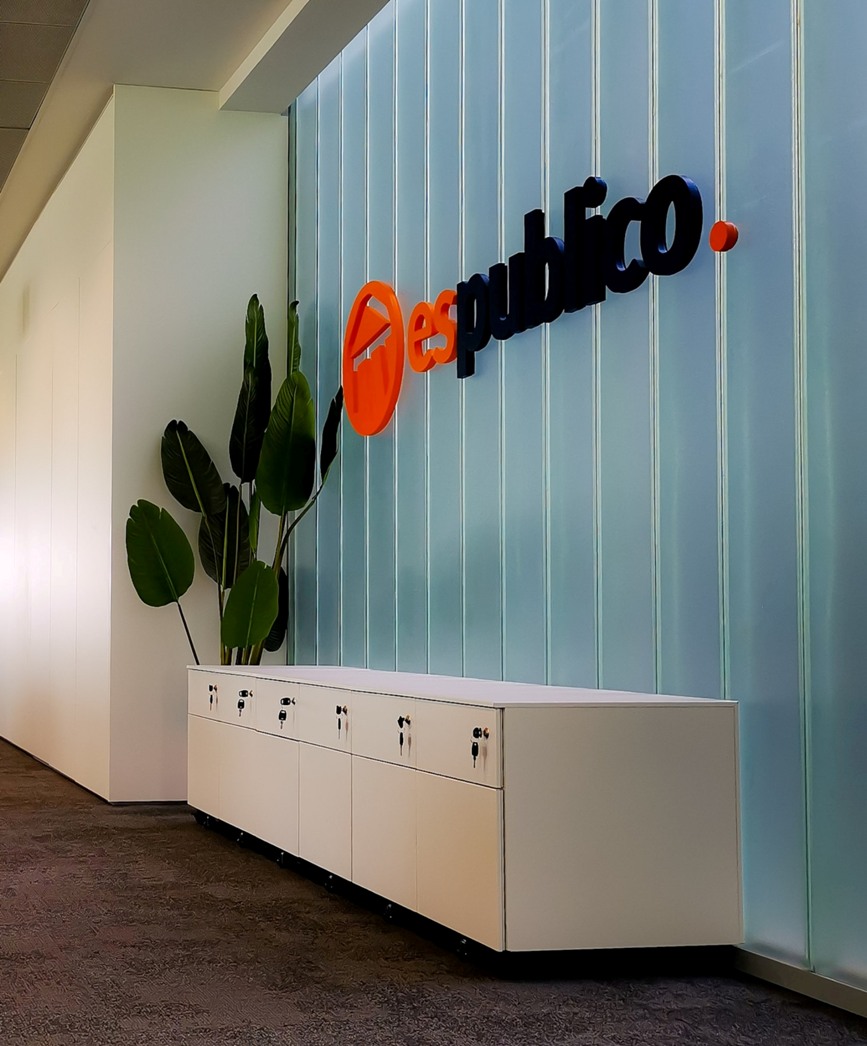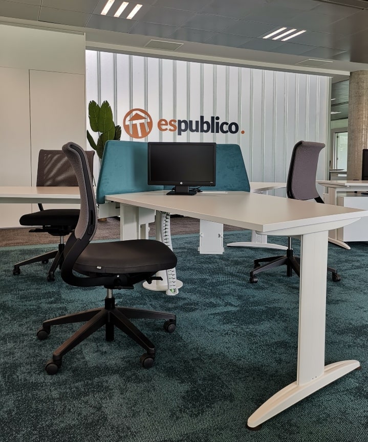 En esta FASE 2 de ESPUBLICO y manteniendo la filosofia de la primera realizada este pasado 2018, cualquier detalle esta orientado al cumplimiento de los requeriminetos ergonomicos de cada puesto de trabajo: silleria alemana, mesas proyectadas a medida (Bench 3 puestos) para cubrir las necesidades de cada empleado, mesas altas y taburetes con respaldo para zonas de reuniones, pizarras correderas y paneles rotulables en despachos, zonas de relax con jardines verticales.