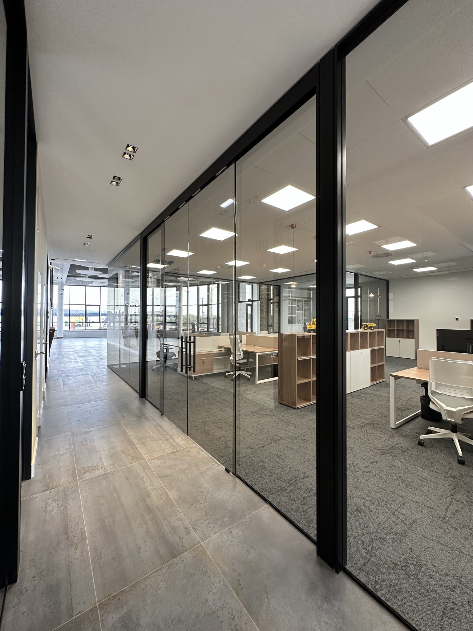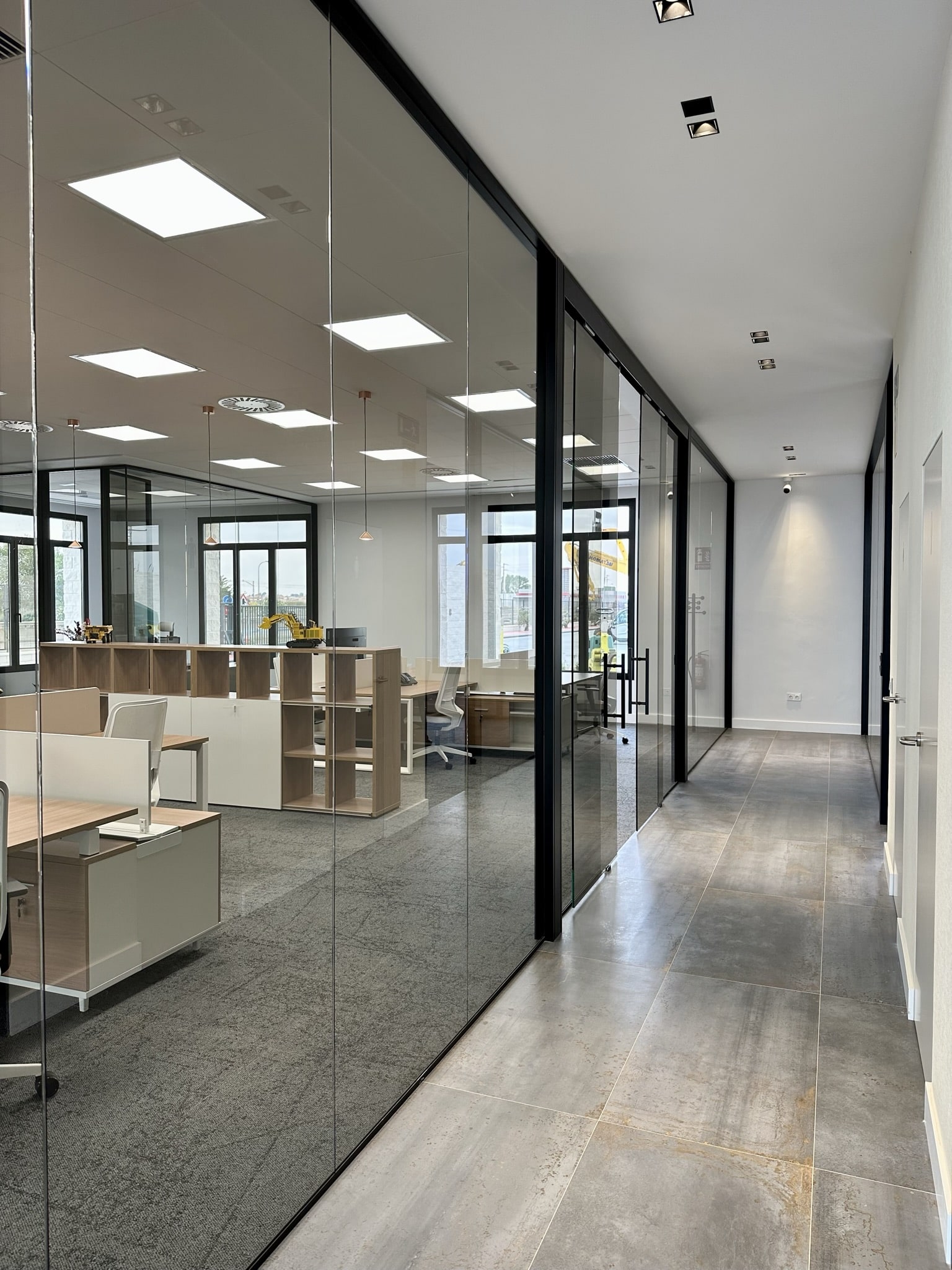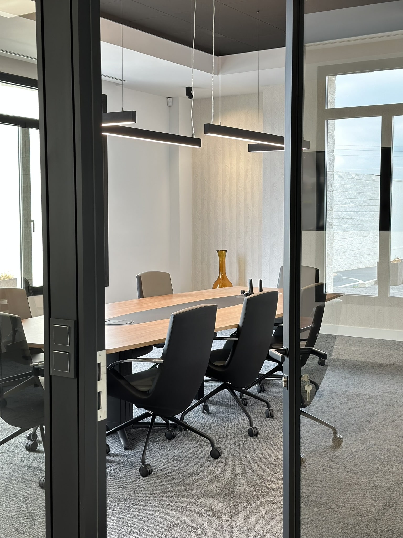 Para este acondicionamiento se ha optado por un mobiliario de calidad Actiu y Andreu World, con acabados cálidos en color madera, sillería de nuestro fabricante Forma 5, y un acondicionamiento acústico y visual en la compartimentación de espacios y revestimientos de suelos con vidrios en color fume azul para la mampara Trebe de Sitab y la moqueta de Interface.