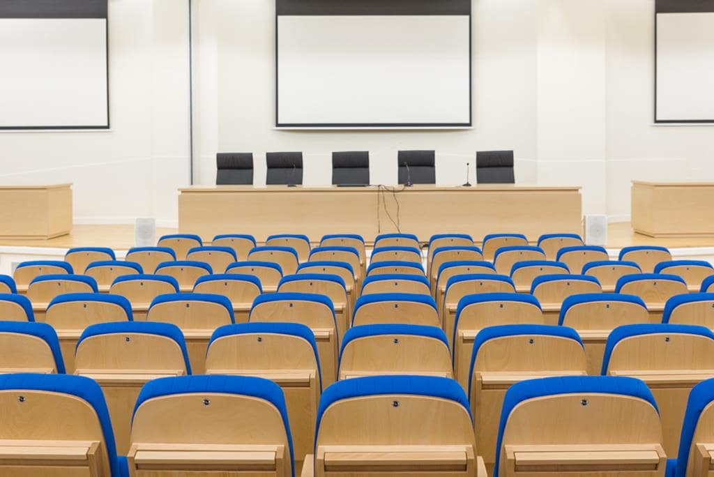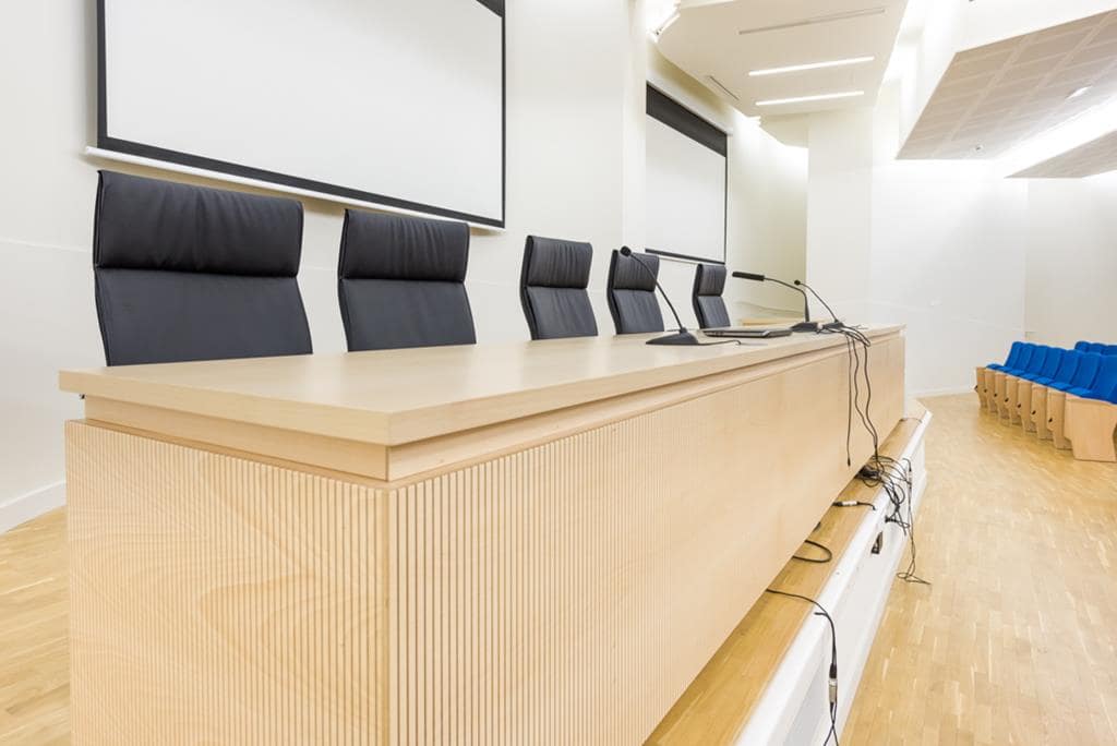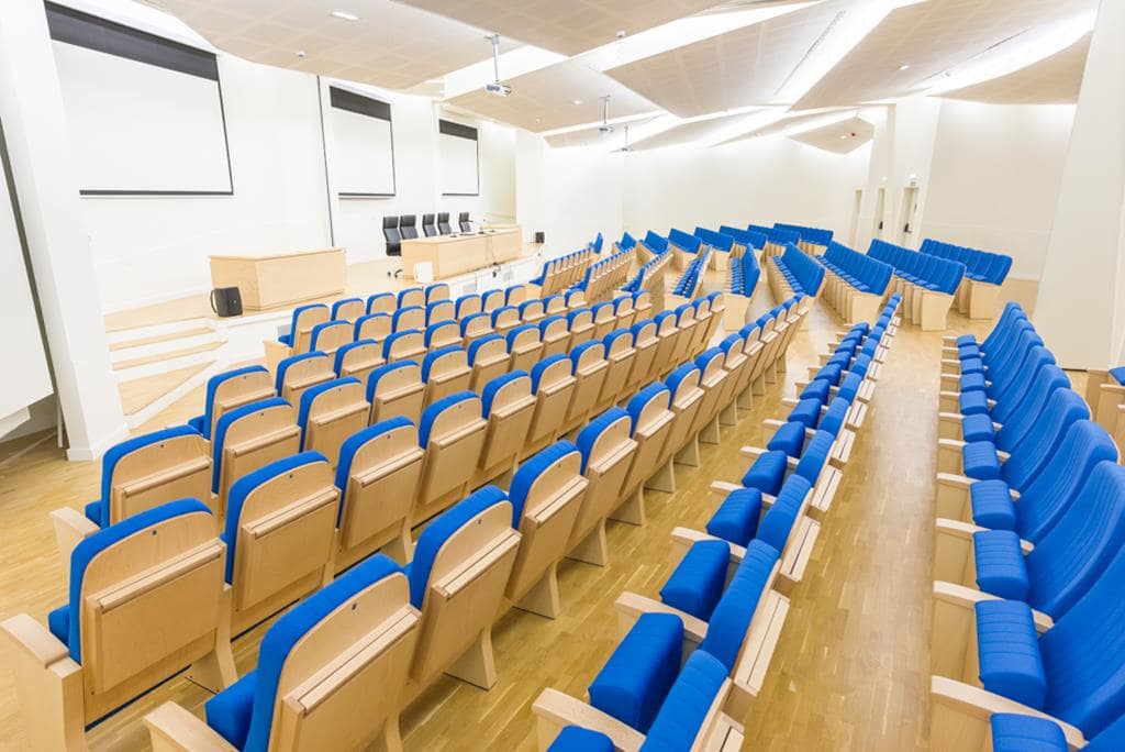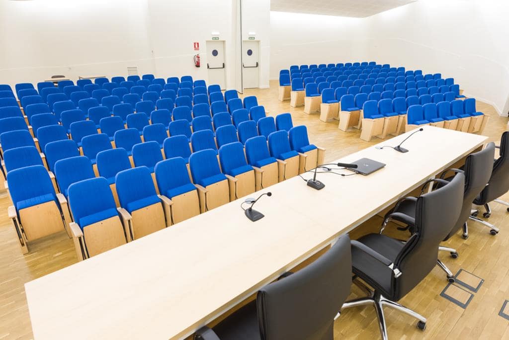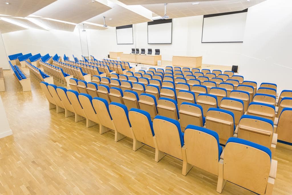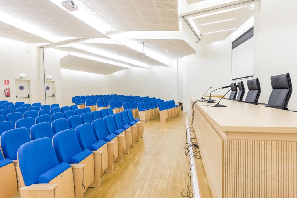 Acorde al estilo moderno y contemporáneo del edificio, se han instalado mas de 200 plazas en el anfiteatro así como la mesa y sillones de presidencia.