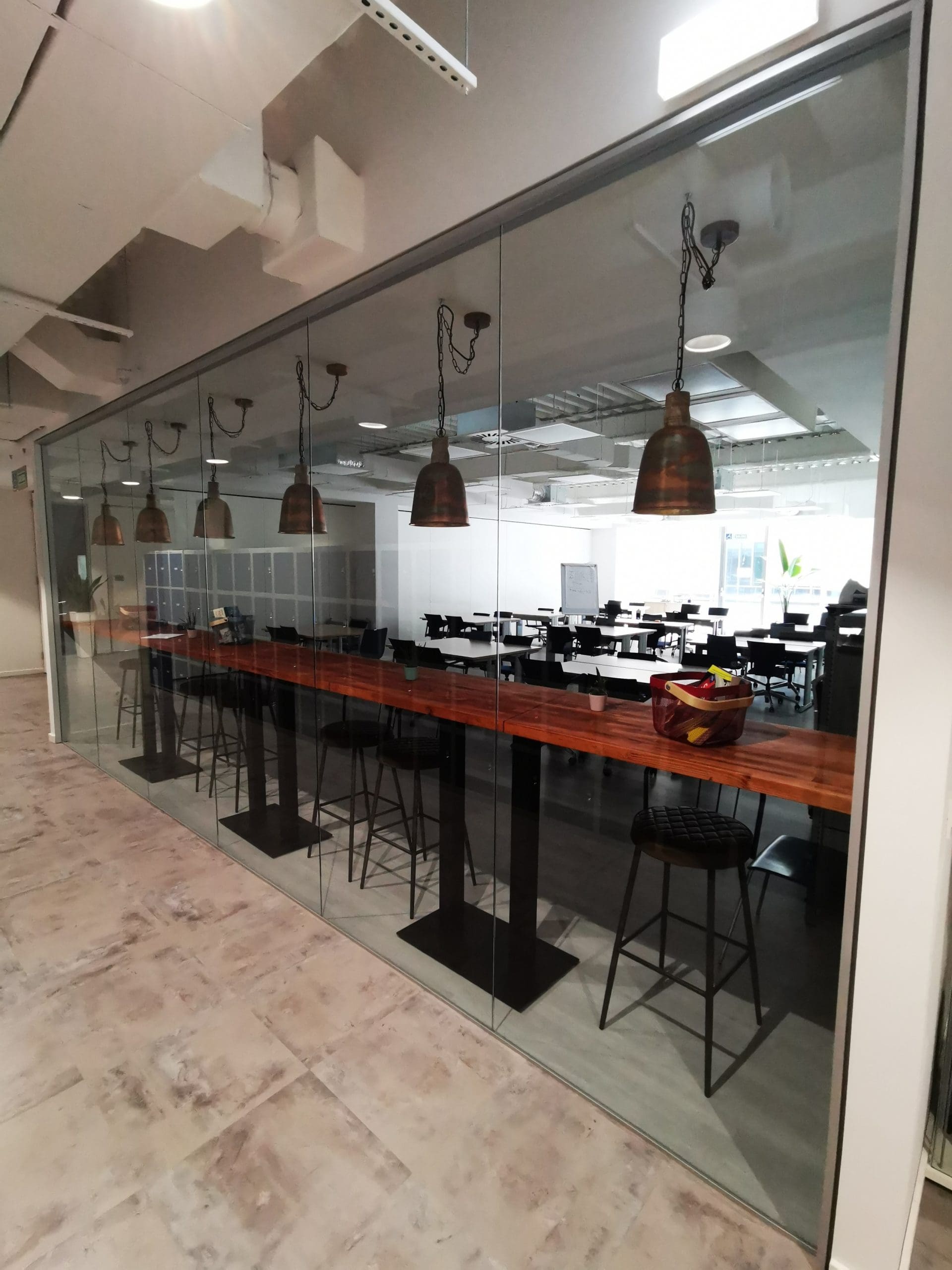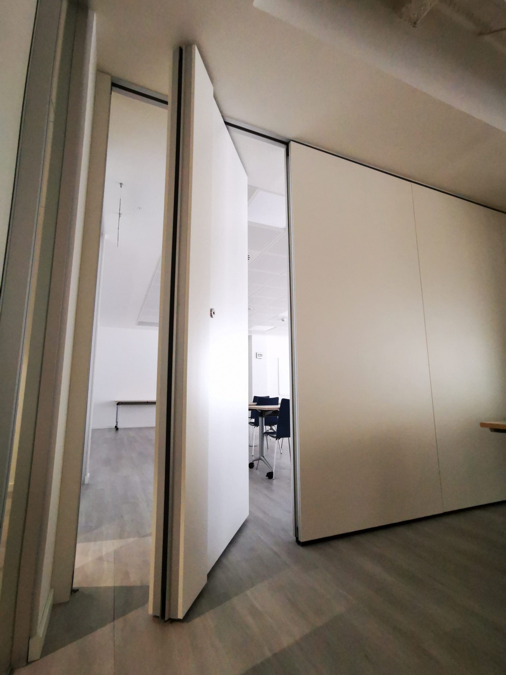 Los productos mas destacables han sido: nuestras mamparas serie TREBE de SITAB, el SUELO TECNICO ENCAPSULADO para la posterior instalacion del pavimento autoportante de INTERFACE LVT (Luxury Vynil Tile) imitacion microcemento y TABIQUE MOVIL para la ampliacion de ciertas salas donde realizar presentaciones multitudinarias.
