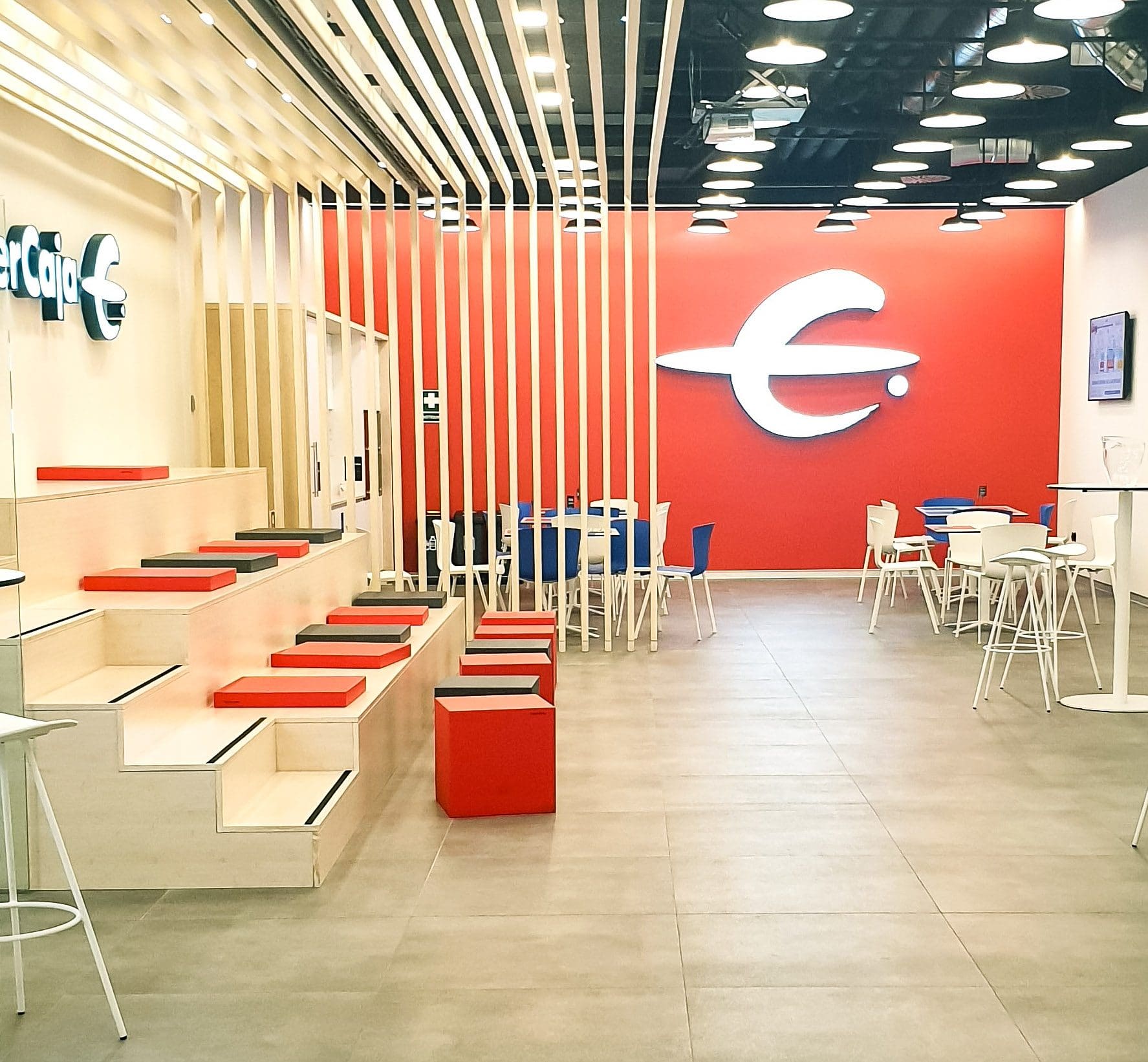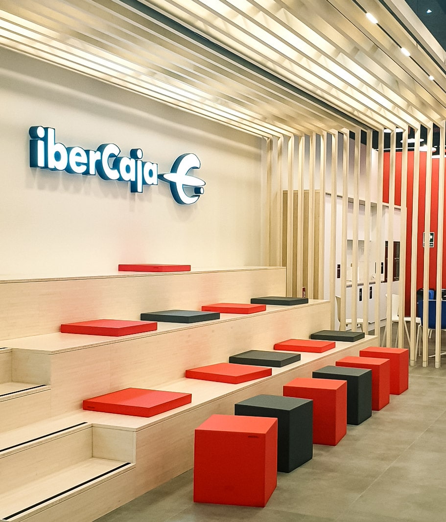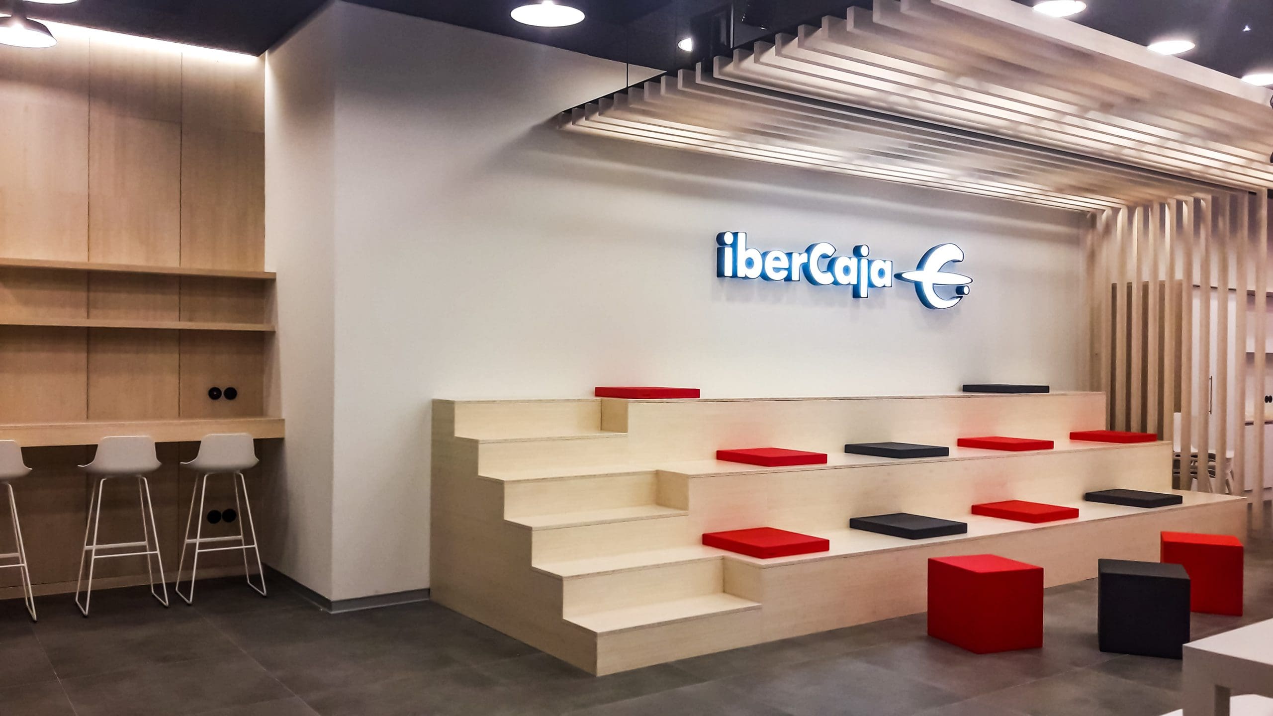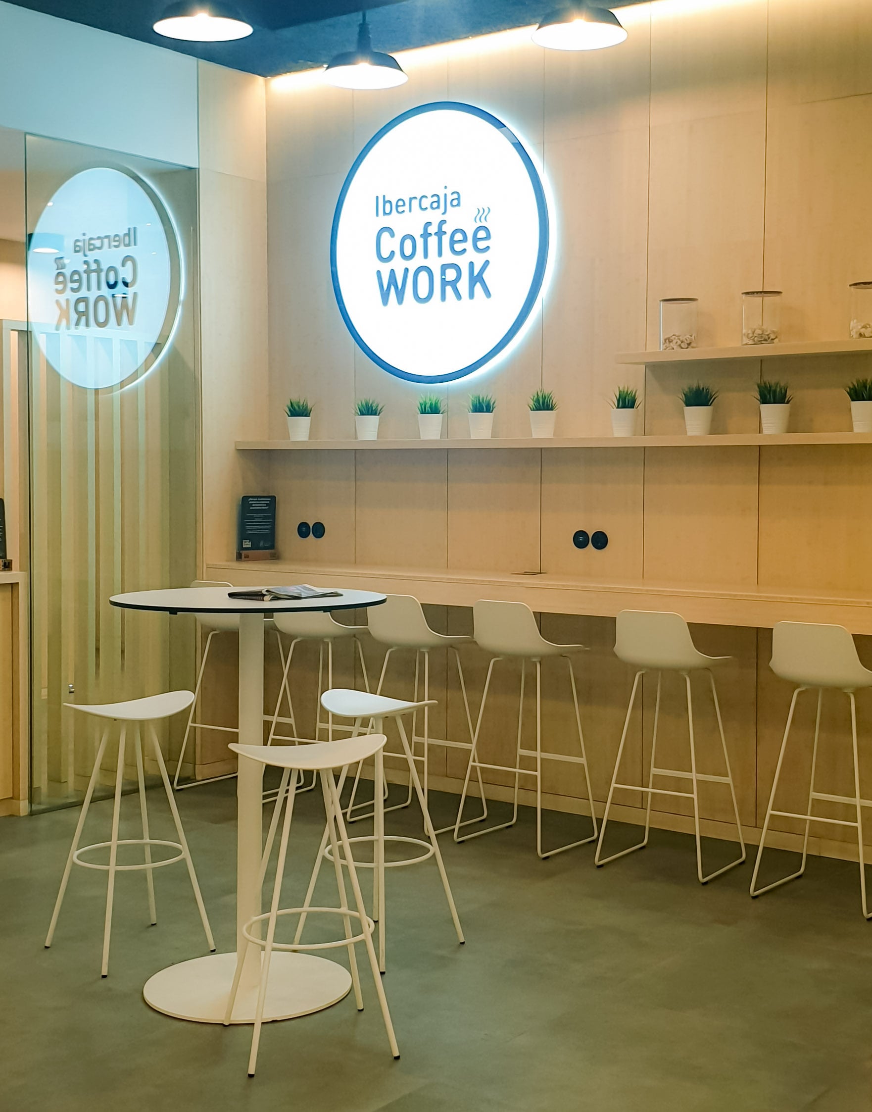 Se ha creado para Ibercaja un nuevo espacio multifuncional para sus trabajadores donde poder realizar sesiones formativas a nivel interno, presentaciones a clientes de nuevos productos , y todo acompañado de un ambiente relajado donde poder desconectar tomando un aperitivo .